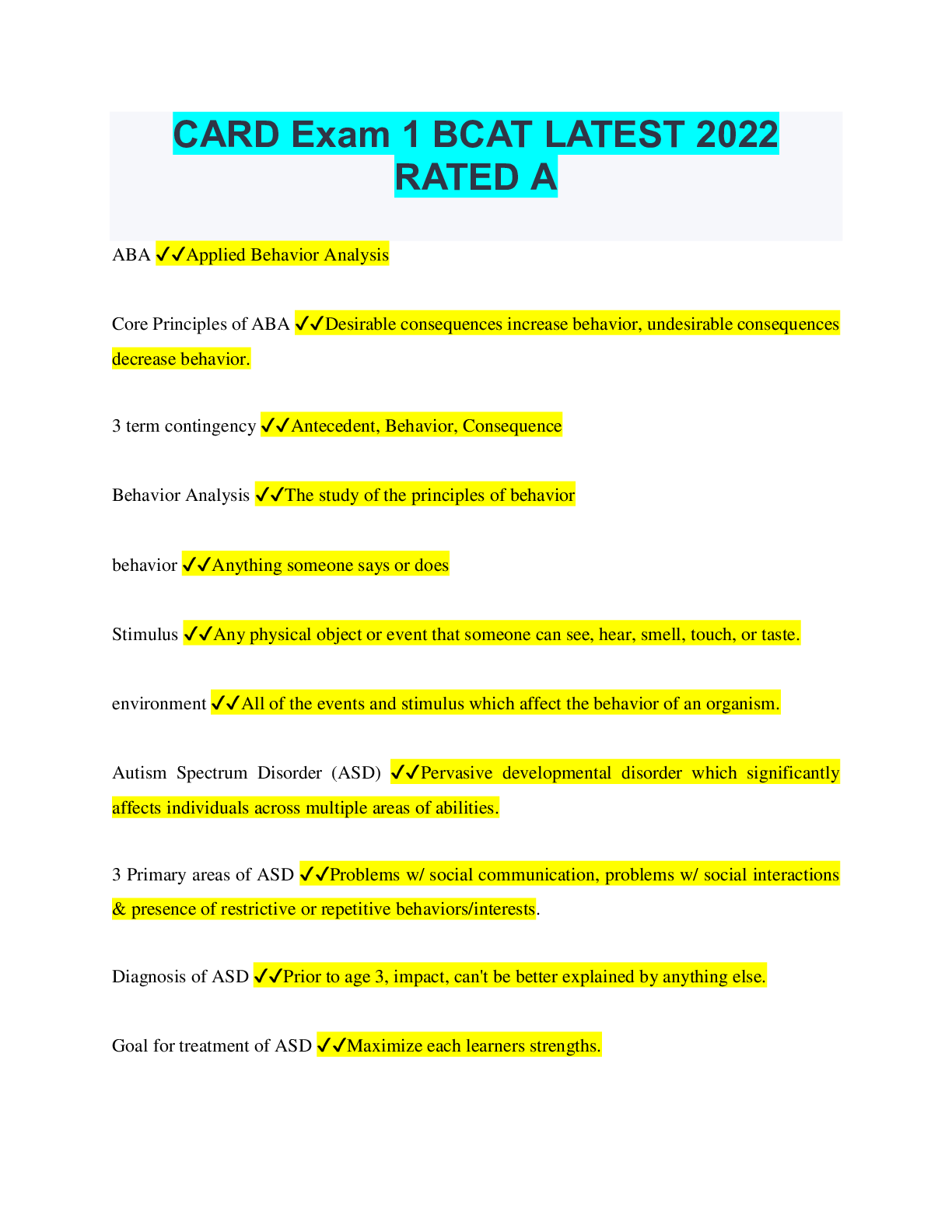 Critical Thinking > QUESTIONS & ANSWERS > CARD Exam 1 BCAT LATEST 2022 RATED A (All)