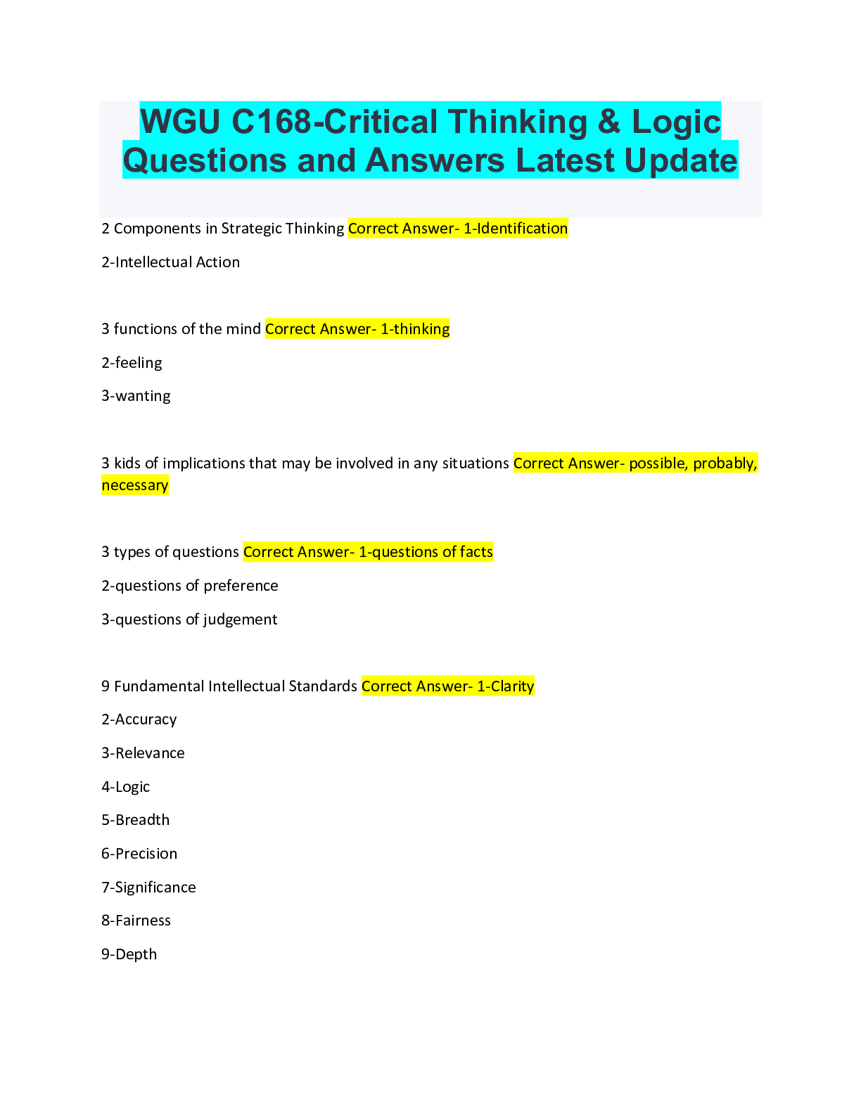 Critical Thinking > QUESTIONS & ANSWERS > WGU C168-Critical Thinking & Logic Questions and Answers Latest Update (All)