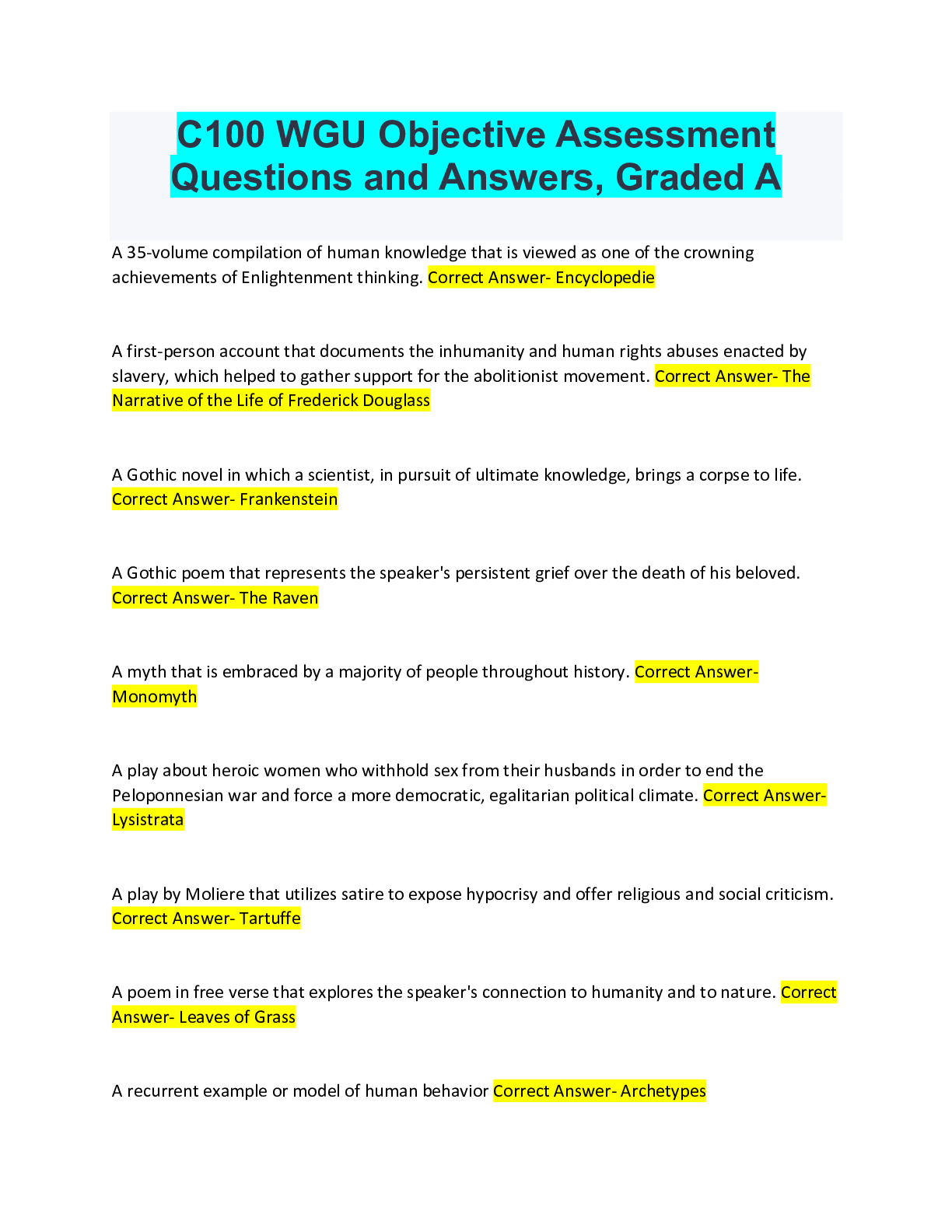 Critical Thinking > QUESTIONS & ANSWERS > C100 WGU Objective Assessment Questions and Answers, Graded A (All)