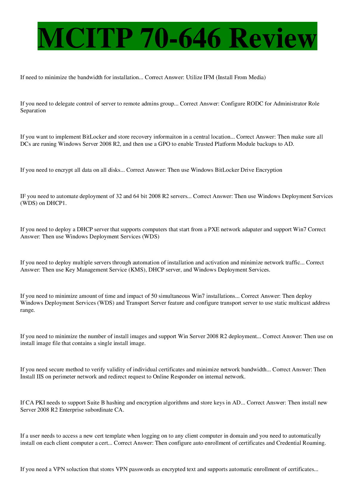Computer Science > EXAM > MCITP 70-646 Review 238 QUESTIONS AND ANSWERS GRADED A (All)