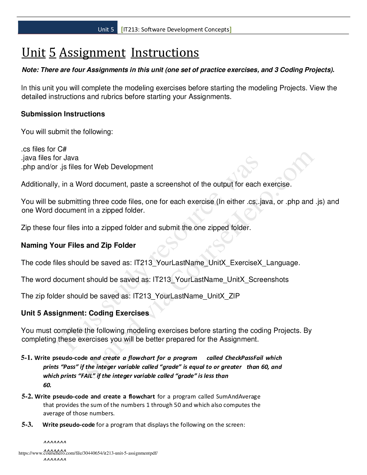 Computer Science > Summary > Summary IT 213 /IT 213 Unit 5 Assignment Coding Exercises (All)