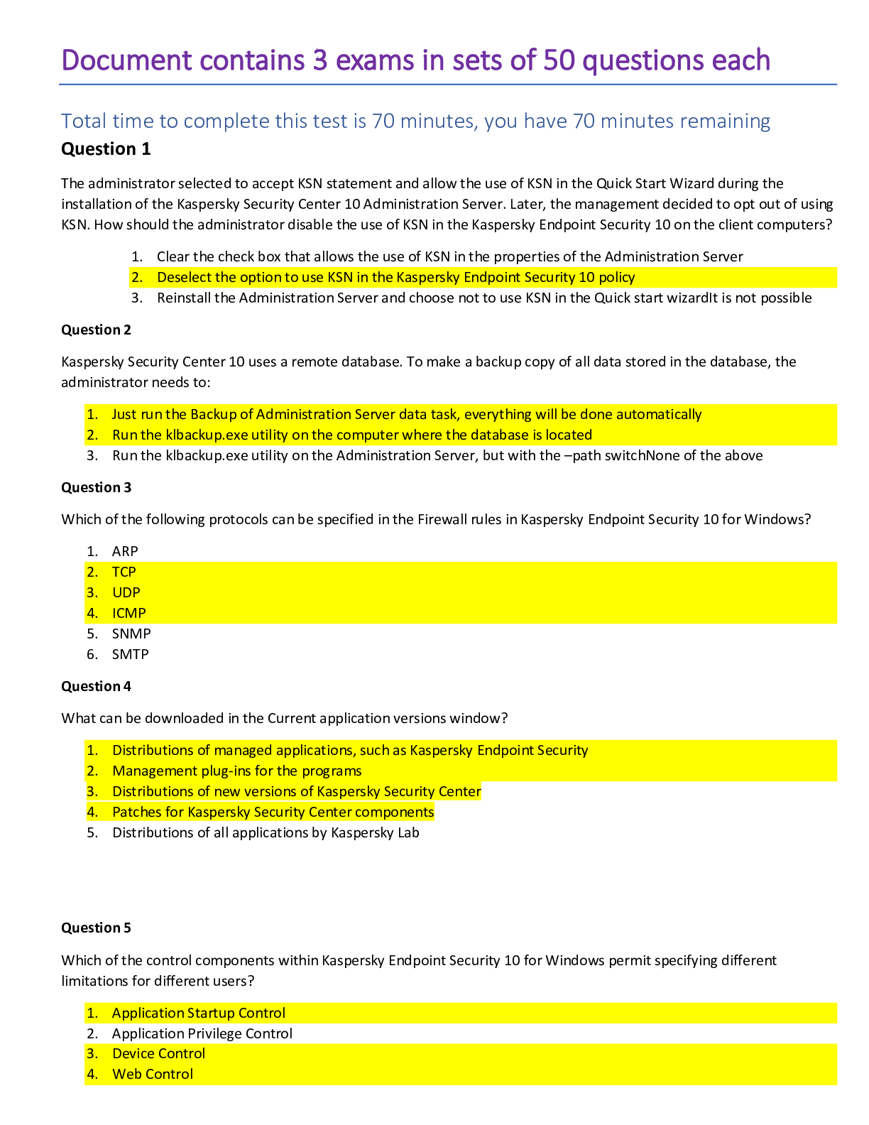 Computer Science > QUESTIONS & ANSWERS > KASPERSKY KL002.11.1d COLOR AMARILLO CORRECTAS: Contains 27 Q&A. All Answered Satisfactorily. (All)