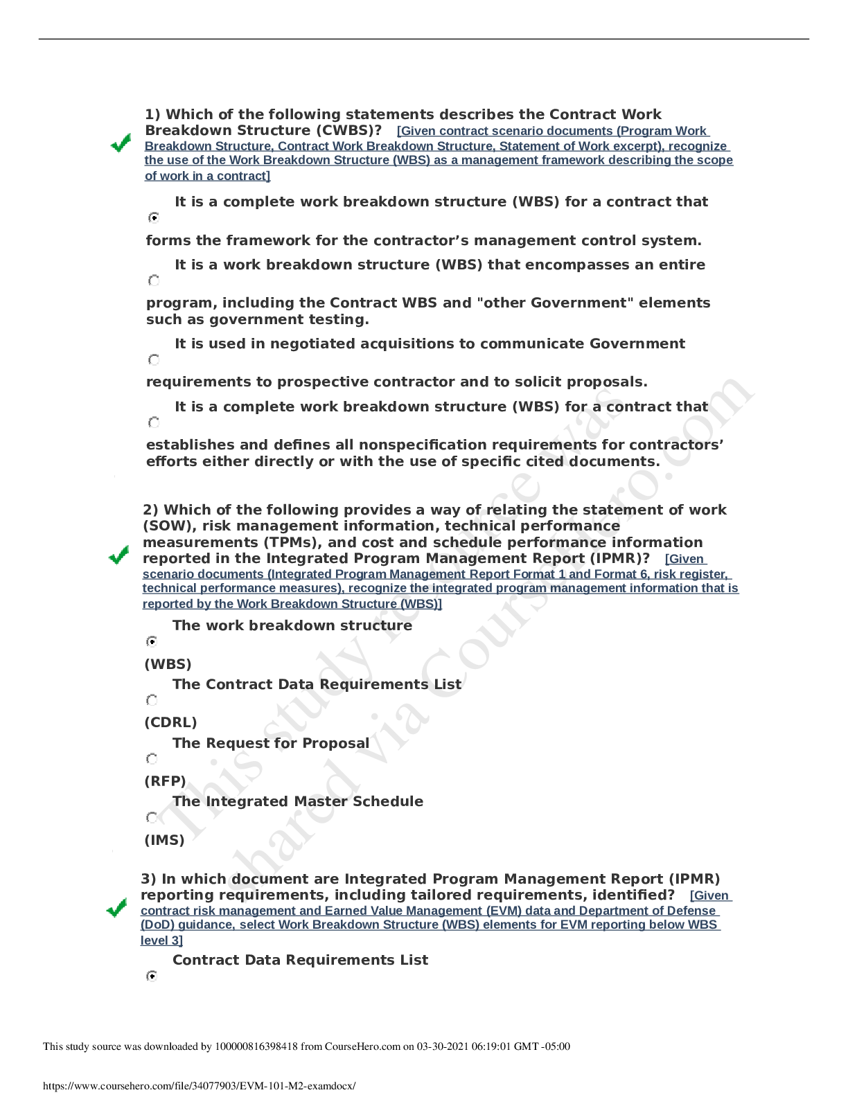 Computer Science > EXAM > Defense Acquisition University - EVM 101EVM 101 M2 exam WITH ALL ANSWERS CORRECT (All)