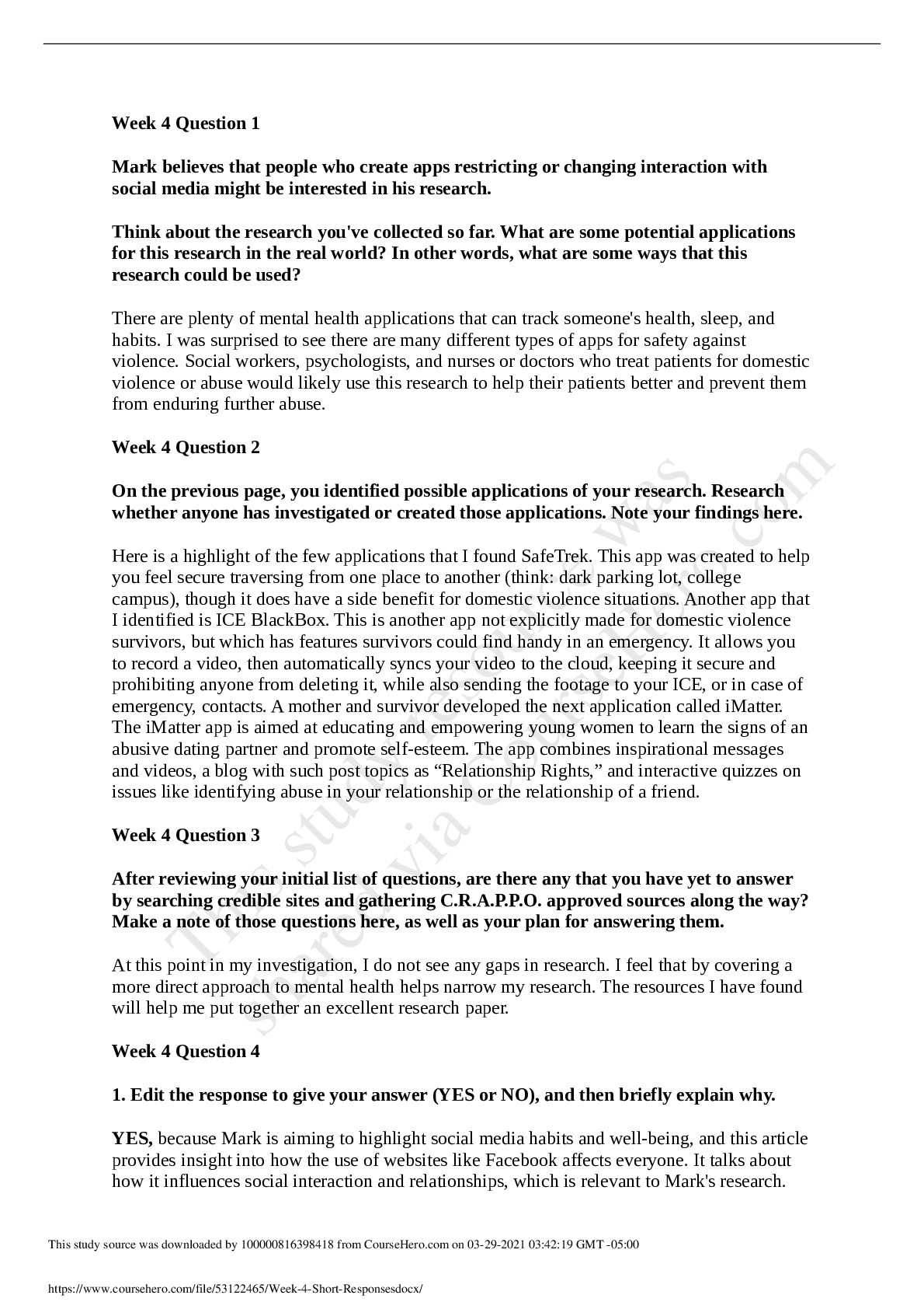 Computer Science > QUESTIONS & ANSWERS > Southern New Hampshire University - SCS 200Week 4 Short Responses (All)