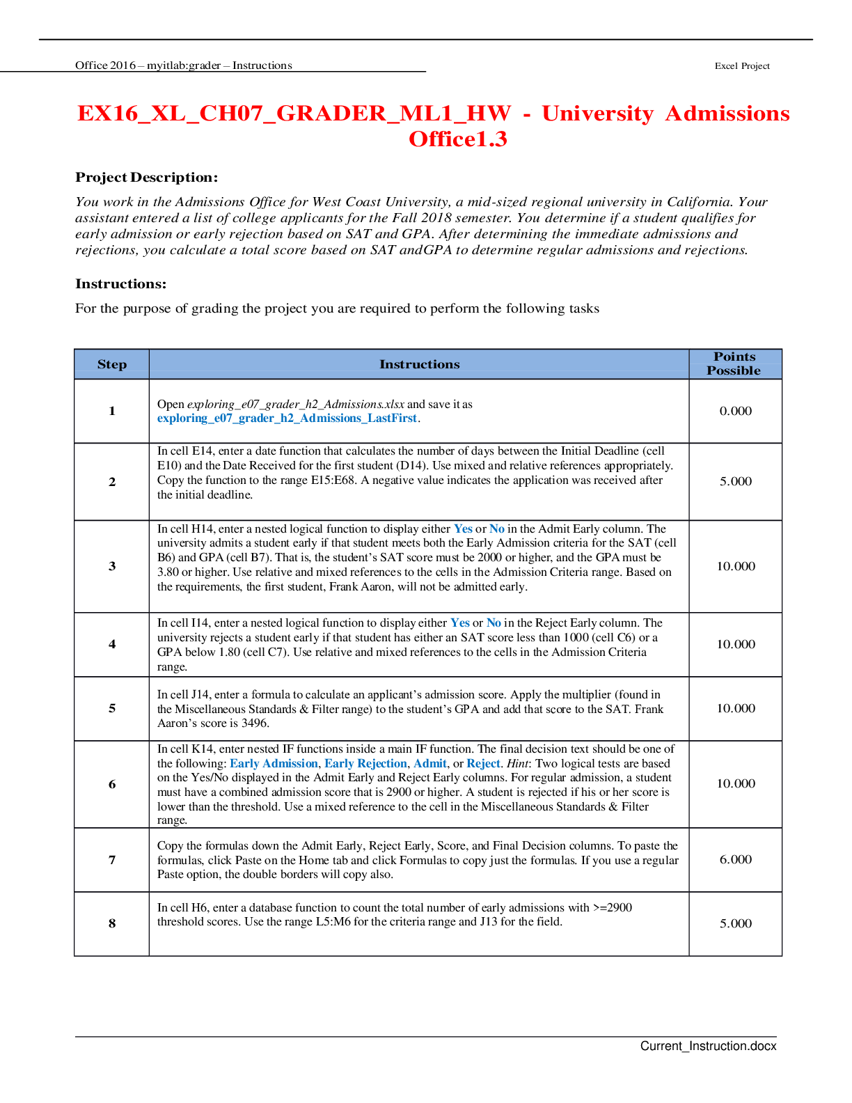 Computer Science > EXAM > EX16 XL CH07GRADER ML1 HW Office 1.3| Complete Solutions (All)