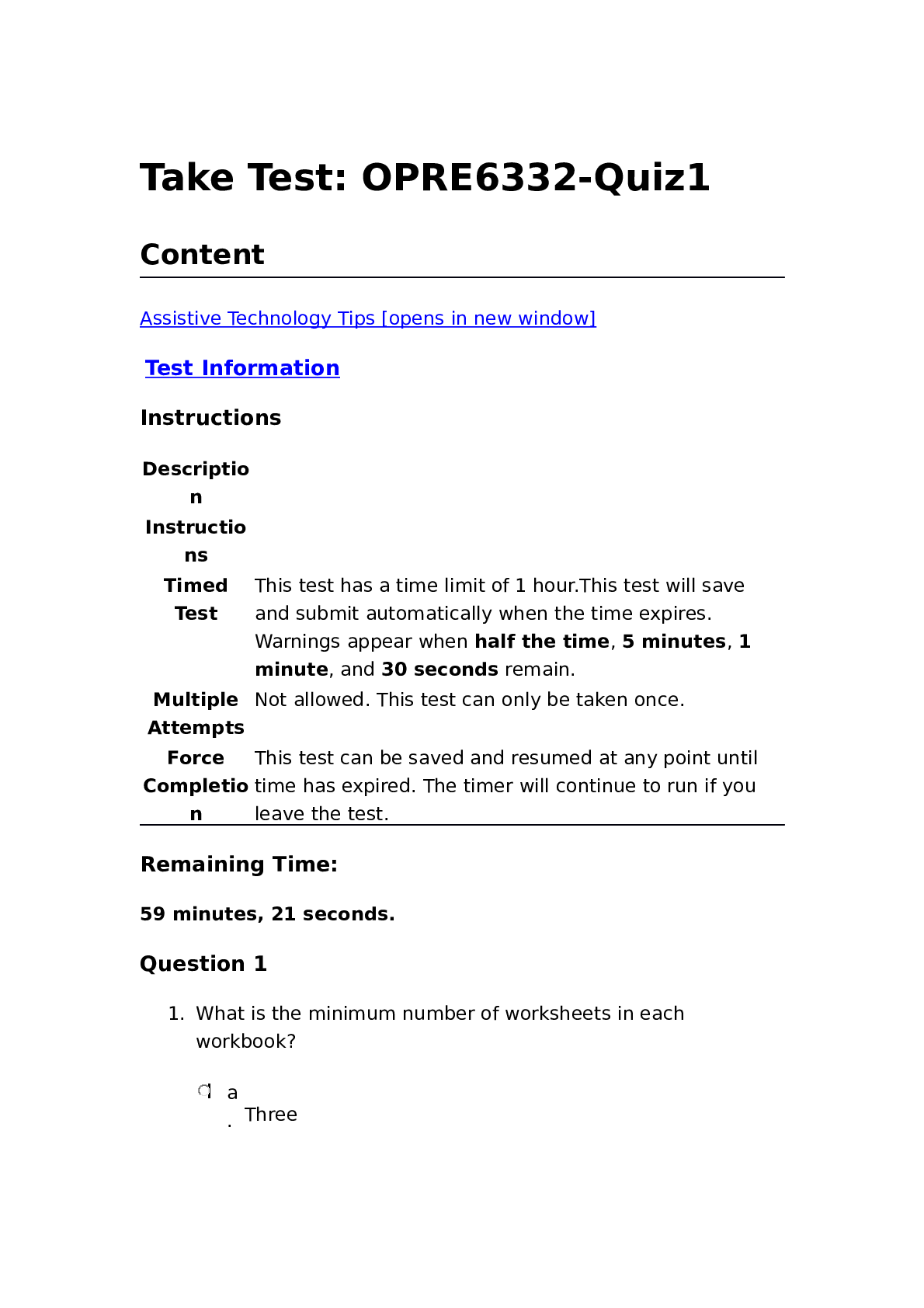 Computer Science > QUESTIONS & ANSWERS > University of Texas, DallasOPRE 6332Quiz 3 - OPRE 6332 (All)