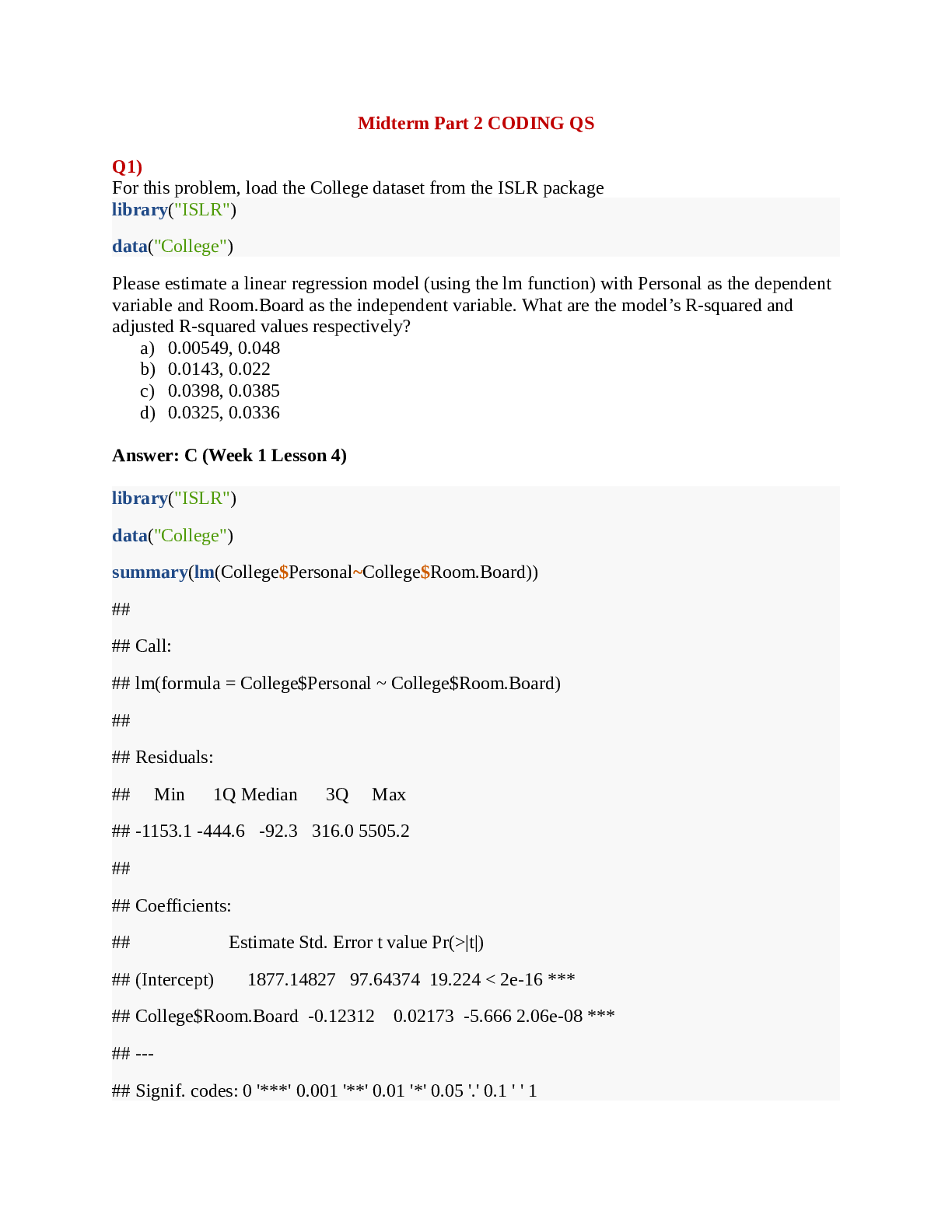 Computer Science > QUESTIONS & ANSWERS > Midterm Part 2 CODING QS Solution Key (All)