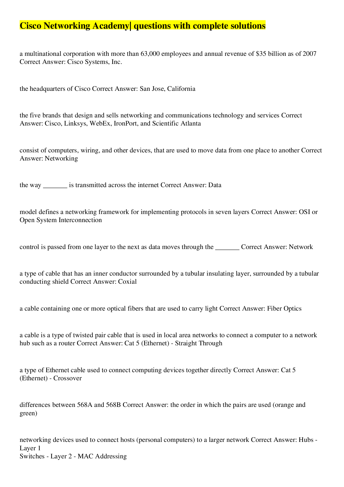 Computer Science > EXAM > Cisco Networking Academy| questions with complete solutions (All)