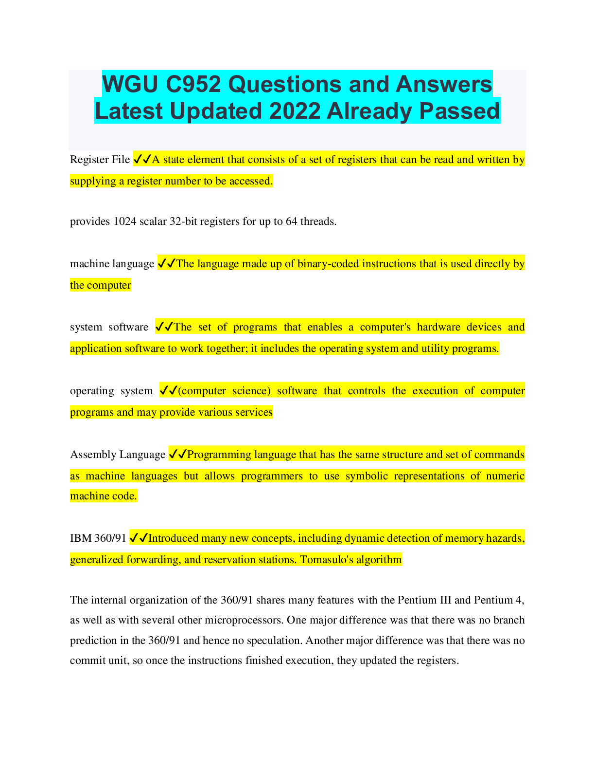 Computer Architecture > QUESTIONS & ANSWERS > WGU C952 Final Set Questions and Answers Latest Updated 2022 (All)