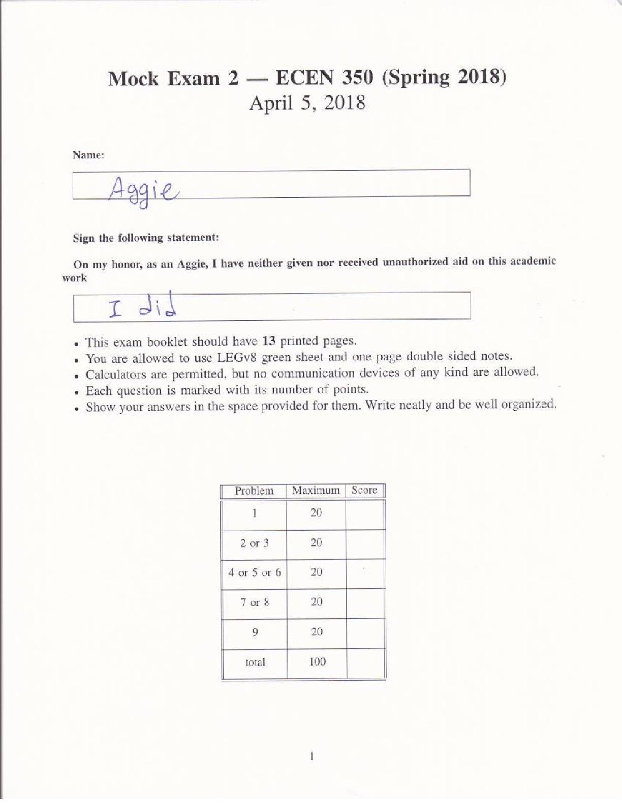 Computer Architecture > QUESTIONS & ANSWERS > Texas A&M University ECEN 350 MockExam2 Solutions-REVIEWE BY EXPERTS-ALL ANSWERS CORRECT (All)