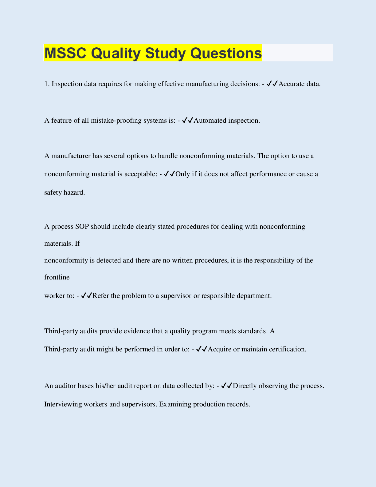Logistics > QUESTIONS & ANSWERS > MSSC Quality Systems (All)