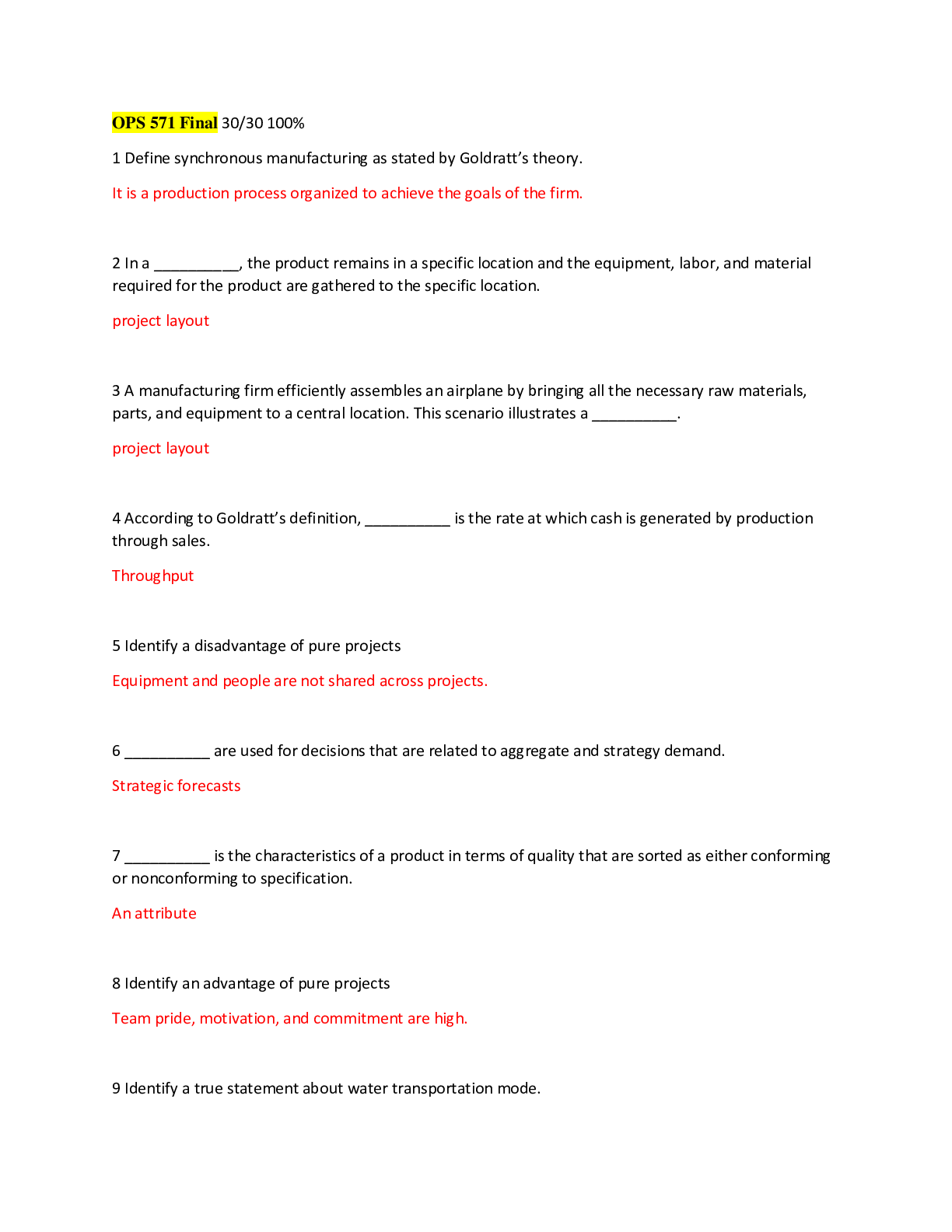 Operations Management > EXAM > OMGT 5783 QUALITY MANAGEMENT MIDTERM/FINAL EXAM (All)