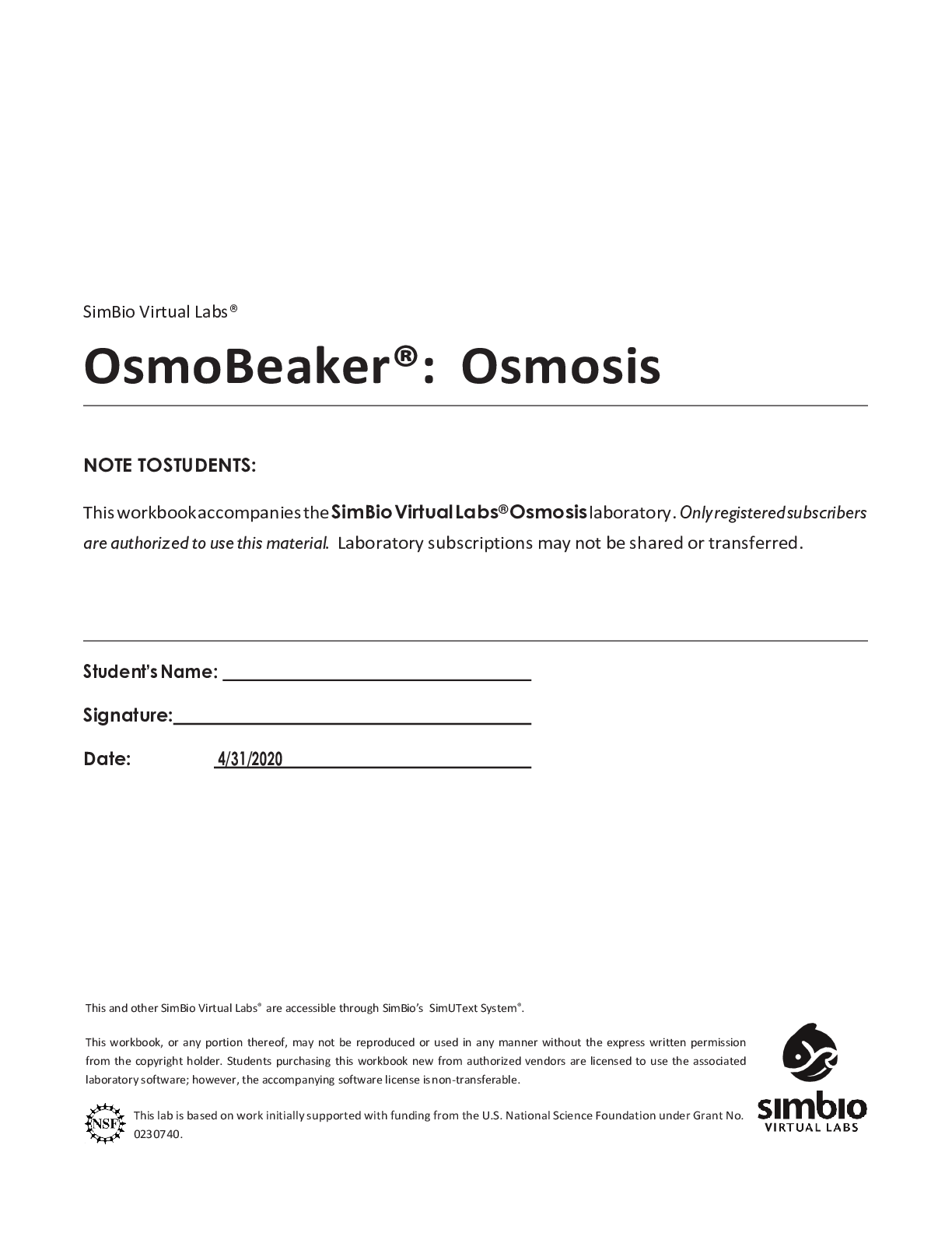 SCIENCE 101 > QUESTIONS & ANSWERS > SimBio Virtual Labs, Osmosis. SCIENCE 100 Simbio Workbook SP2020. Includes All Answers. (All)
