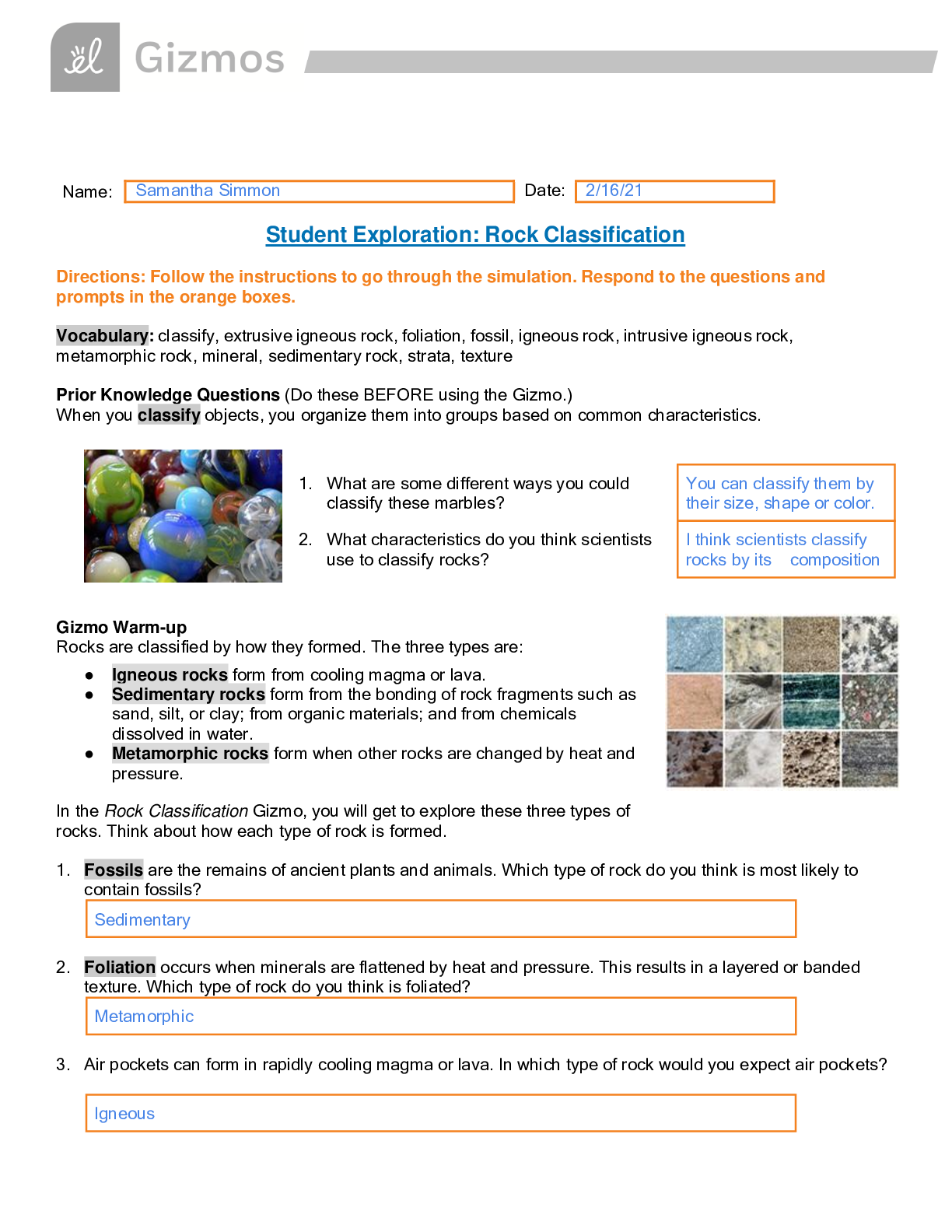 SCIENCE 101 > QUESTIONS & ANSWERS > Gizmo Rock Classification | Student Exploration: Rock Classification 2021 | Already Grade A+ (All)