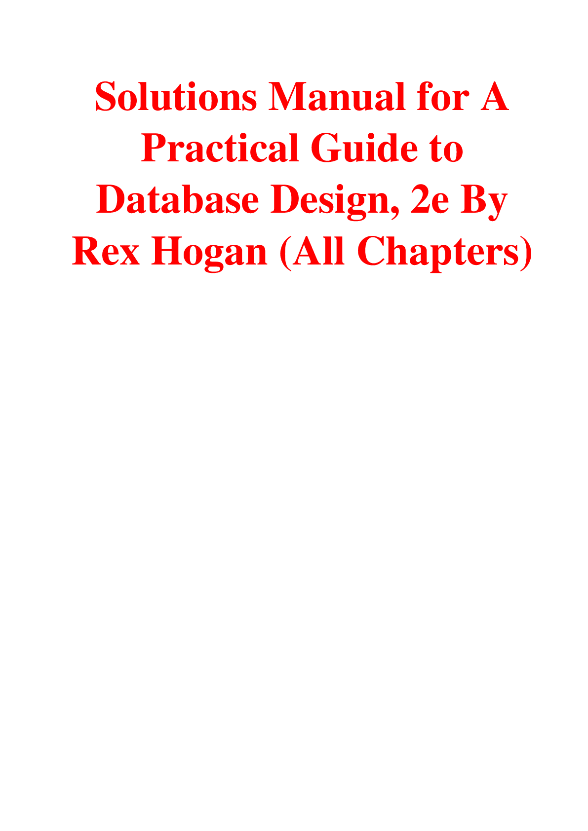 Database Management > SOLUTIONS MANUAL > Solution Manual for A Practical Guide to Database Design 2nd Edition By Rex Hogan (All)