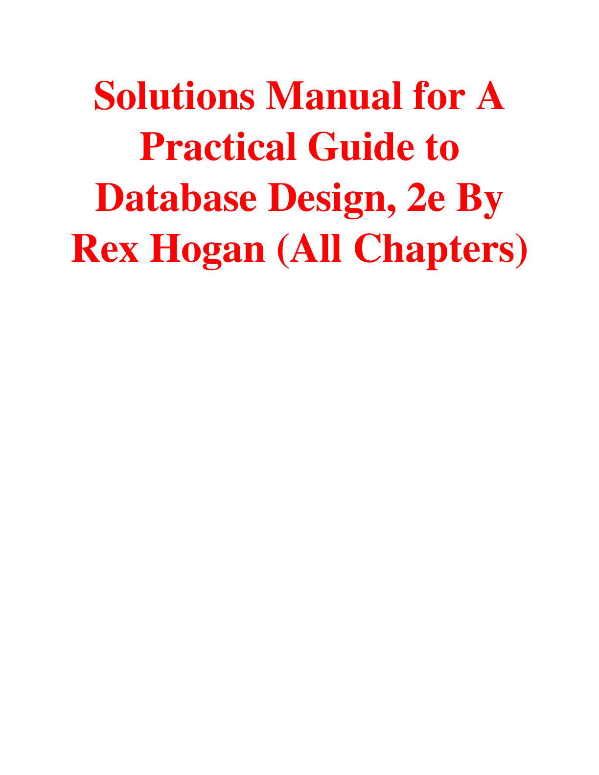 Database Management > SOLUTIONS MANUAL > Solution Manual For A Practical Guide to Database Design 2nd Edition By Rex Hogan (All)