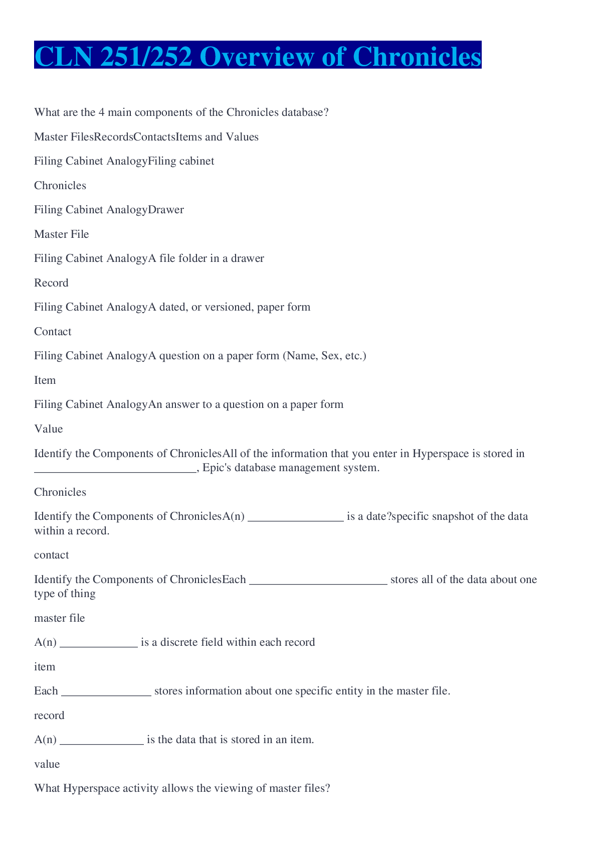 Database Management > EXAM REVIEW > CLN 251/252 Overview of Chronicles updated 2022/2023 correctly answered (All)