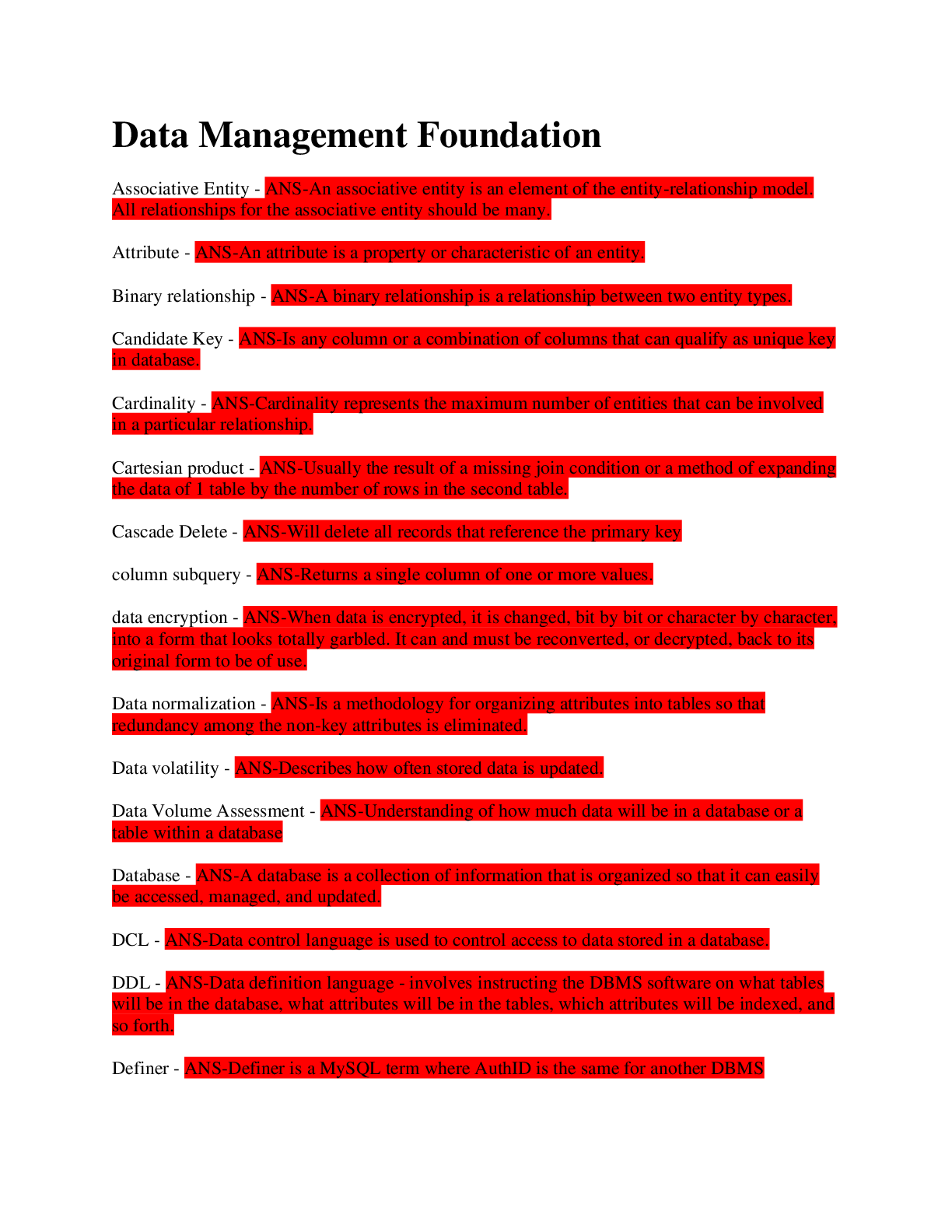 Database Management > EXAM > Data Management Foundation/100% VERIFIED (All)