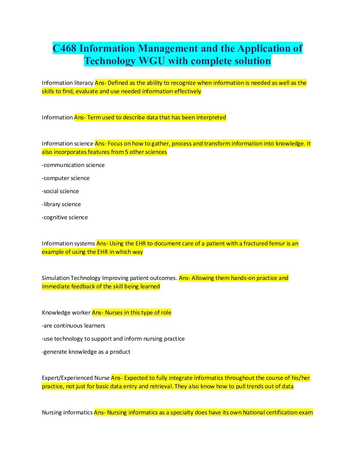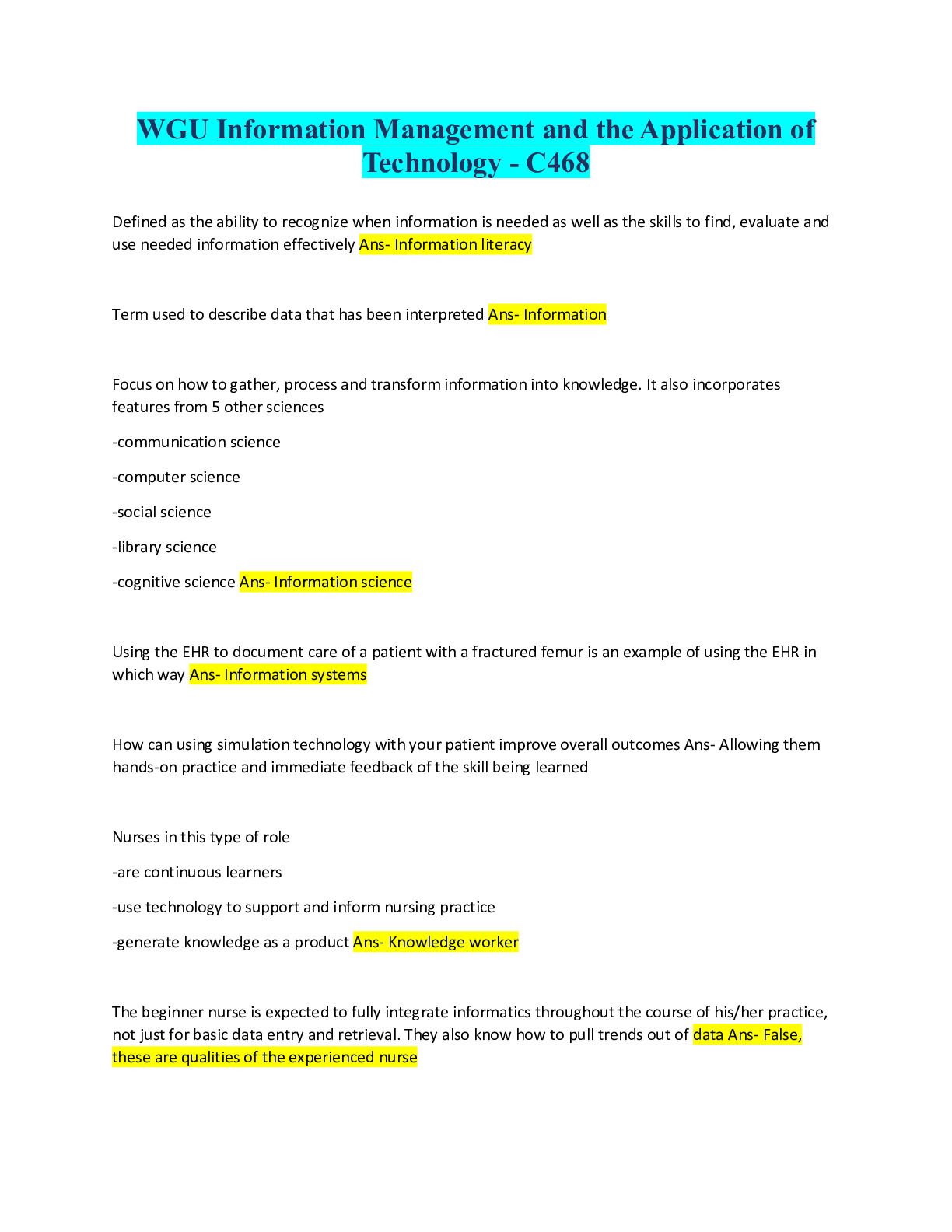 Database Management > QUESTIONS & ANSWERS > C468 Information Management and the Application of Technology WGU with complete solution (All)