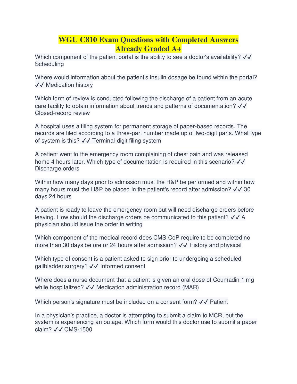Database Management > QUESTIONS & ANSWERS > C810 Foundations in Healthcare Data Management Completed Answers Already Graded A+ (All)