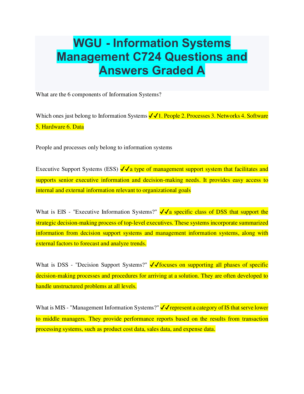Database Management > QUESTIONS & ANSWERS > WGU - Information Systems Management C724 Questions and Answers Graded A (All)