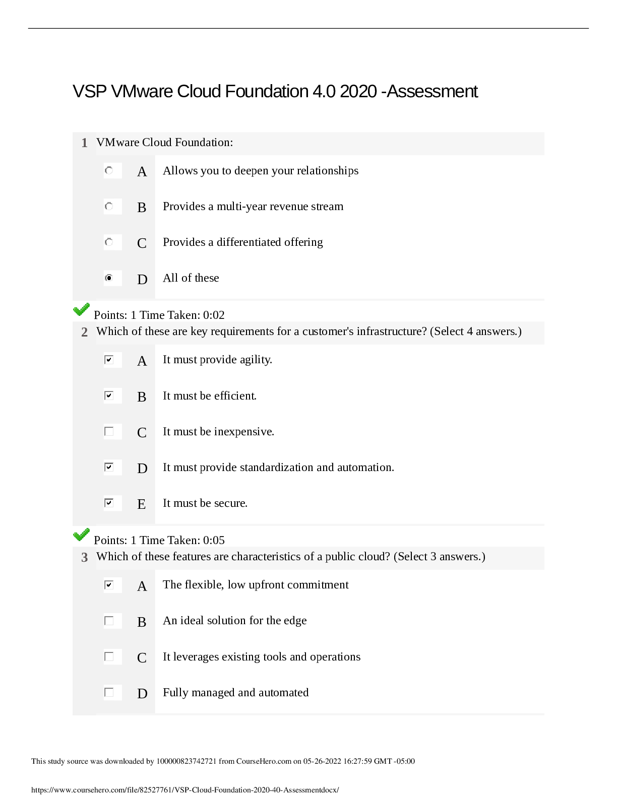 Database Management > QUESTIONS & ANSWERS > DATABASE 2207-22. VSP - Cloud Foundation (2020) 4.0 (All)