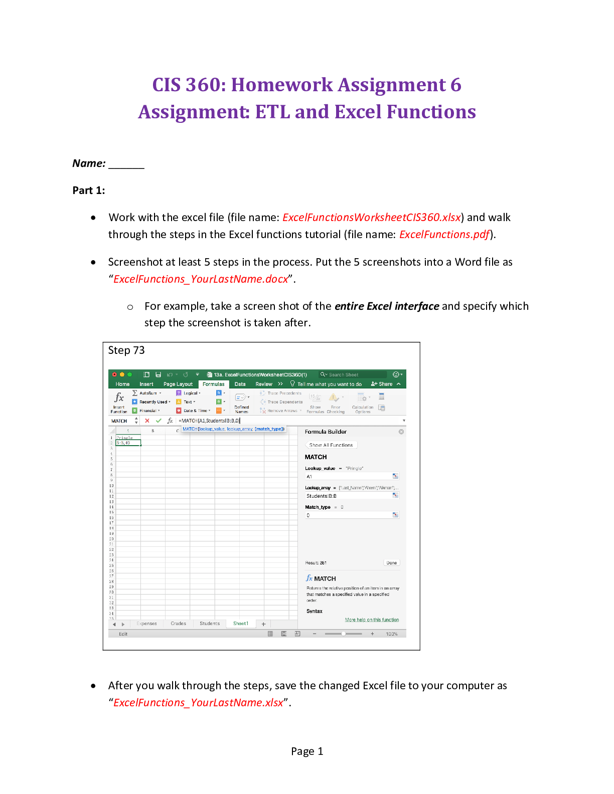 Database Management > QUESTIONS & ANSWERS > Arizona State University - CIS 360CIS 360 Assignment 6. CIS 360: Homework Assignment 6 Assignment: ETL and Excel Functions. (All)