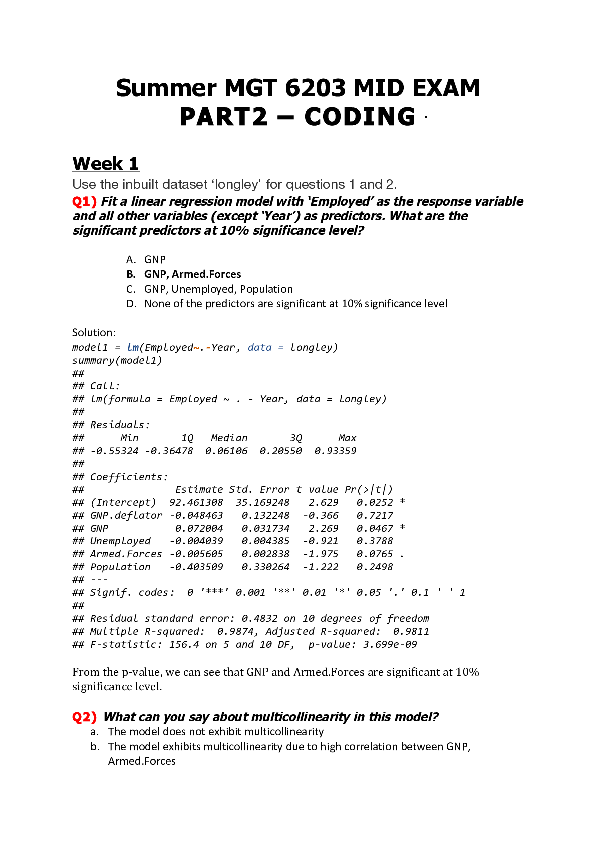 Database Management > EXAM > Summer MGT 6203 MID EXAM PART2 – CODING all answers verified. (All)
