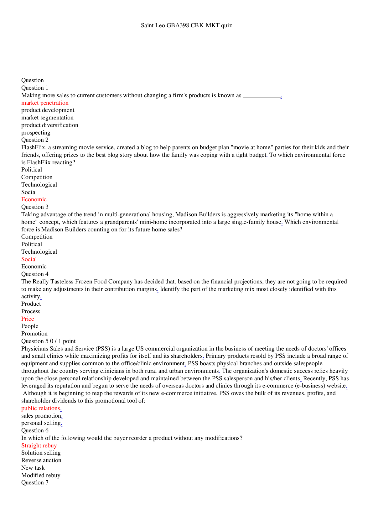 Education > EXAM > Saint Leo GBA398 CBK-MKT quiz/Saint Leo GBA398 CBK-MKT quiz (All)