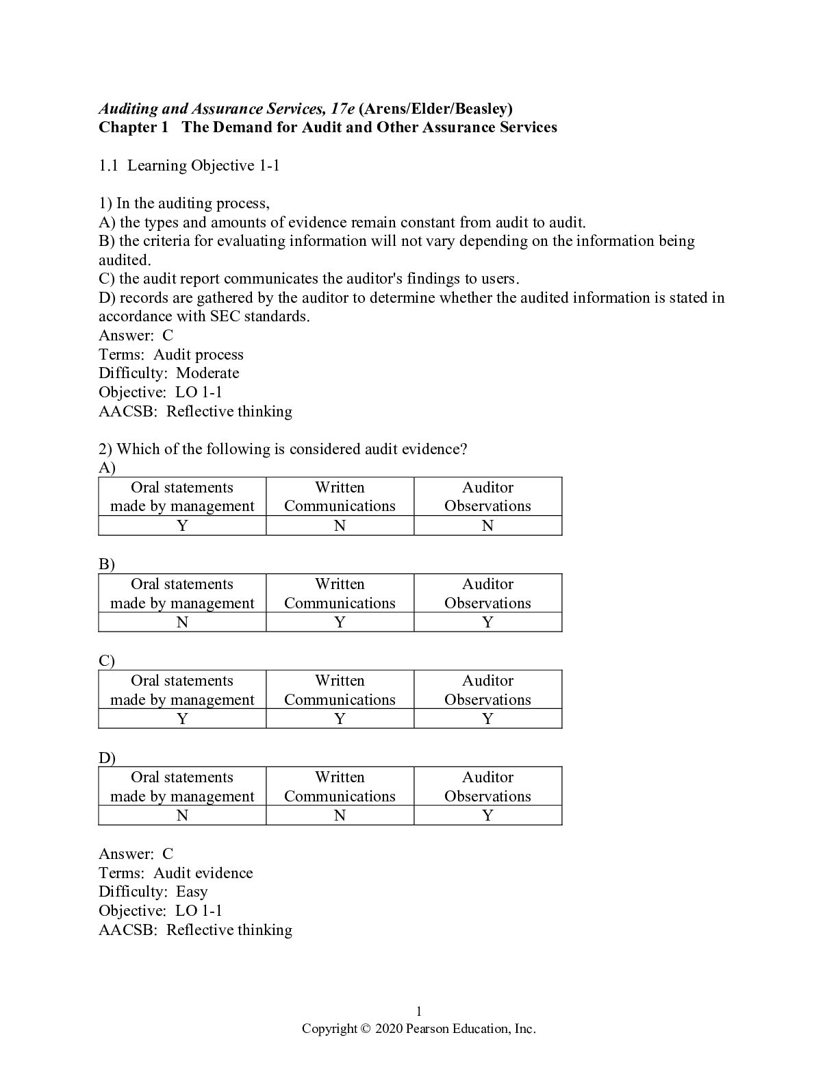 Auditing > TEST BANKS > TEST BANK for Auditing and Assurance Services, 17th Global Edition by Arens, Elder, Beasley, Hogan | All Chapters 1-26. (All)