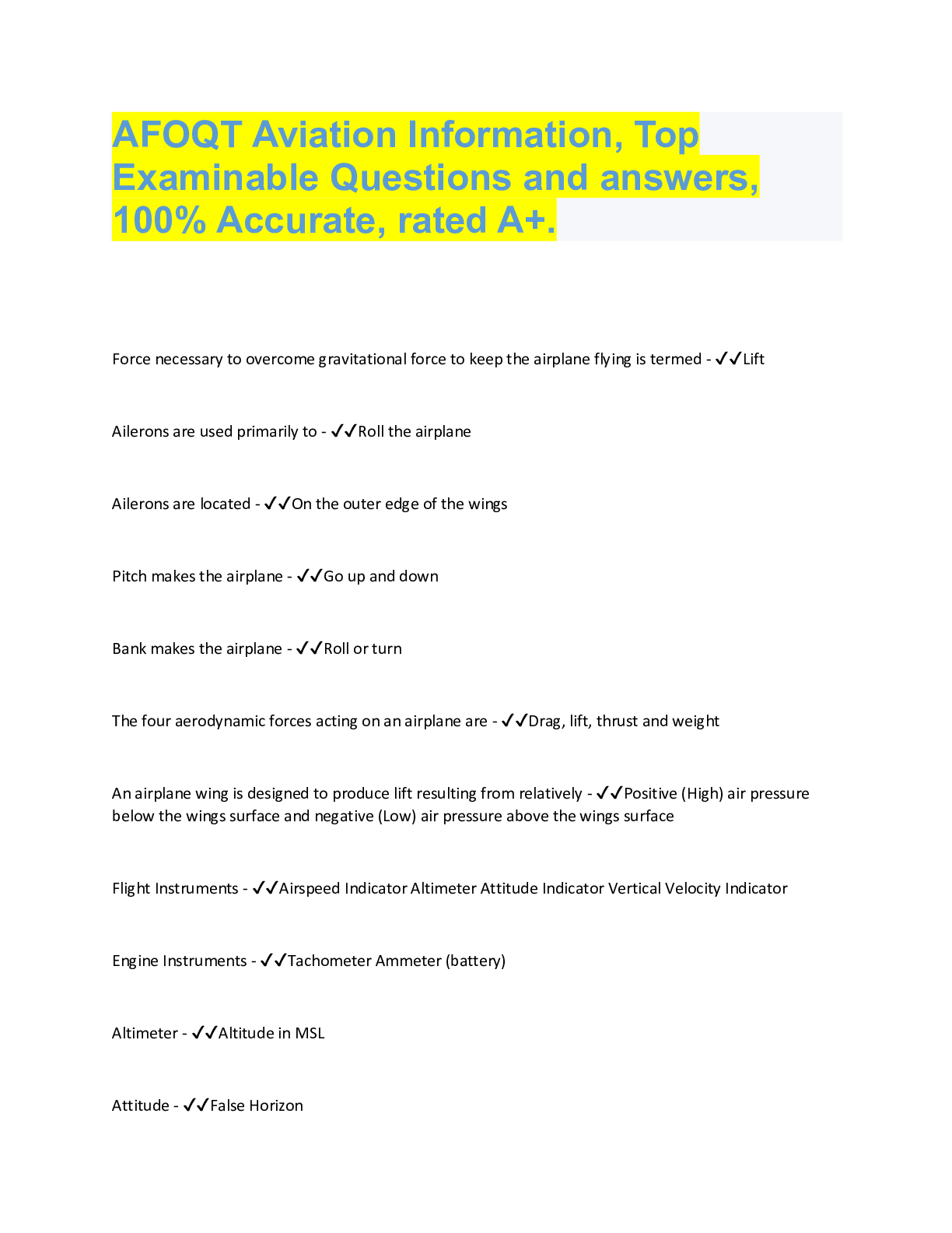 Engineering > QUESTIONS & ANSWERS > AFOQT Aviation Information, Top Examinable Questions and answers, 100% Accurate, rated A+. (All)