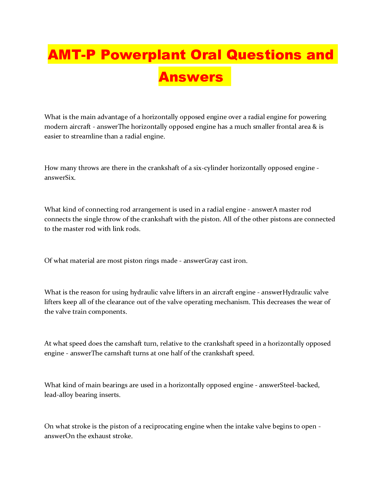 Engineering > QUESTIONS & ANSWERS > AMT-P Powerplant Oral Questions and Answers (All)