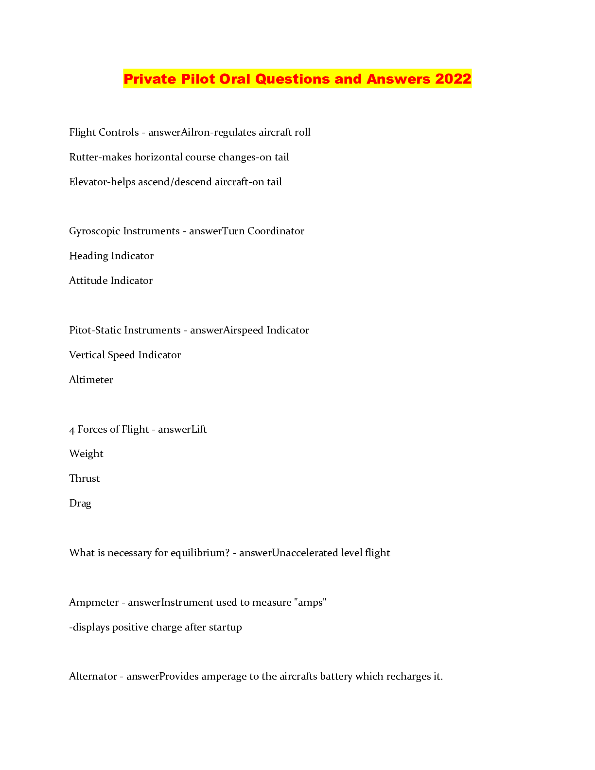 Engineering > QUESTIONS & ANSWERS > Private Pilot Oral Questions and Answers 2022 (All)