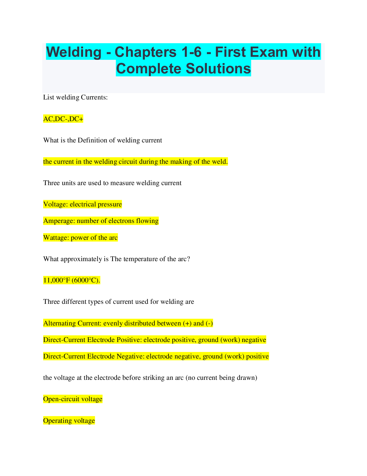 Engineering > QUESTIONS & ANSWERS > Welding - Chapters 1-6 - First Exam with Complete Solutions (All)