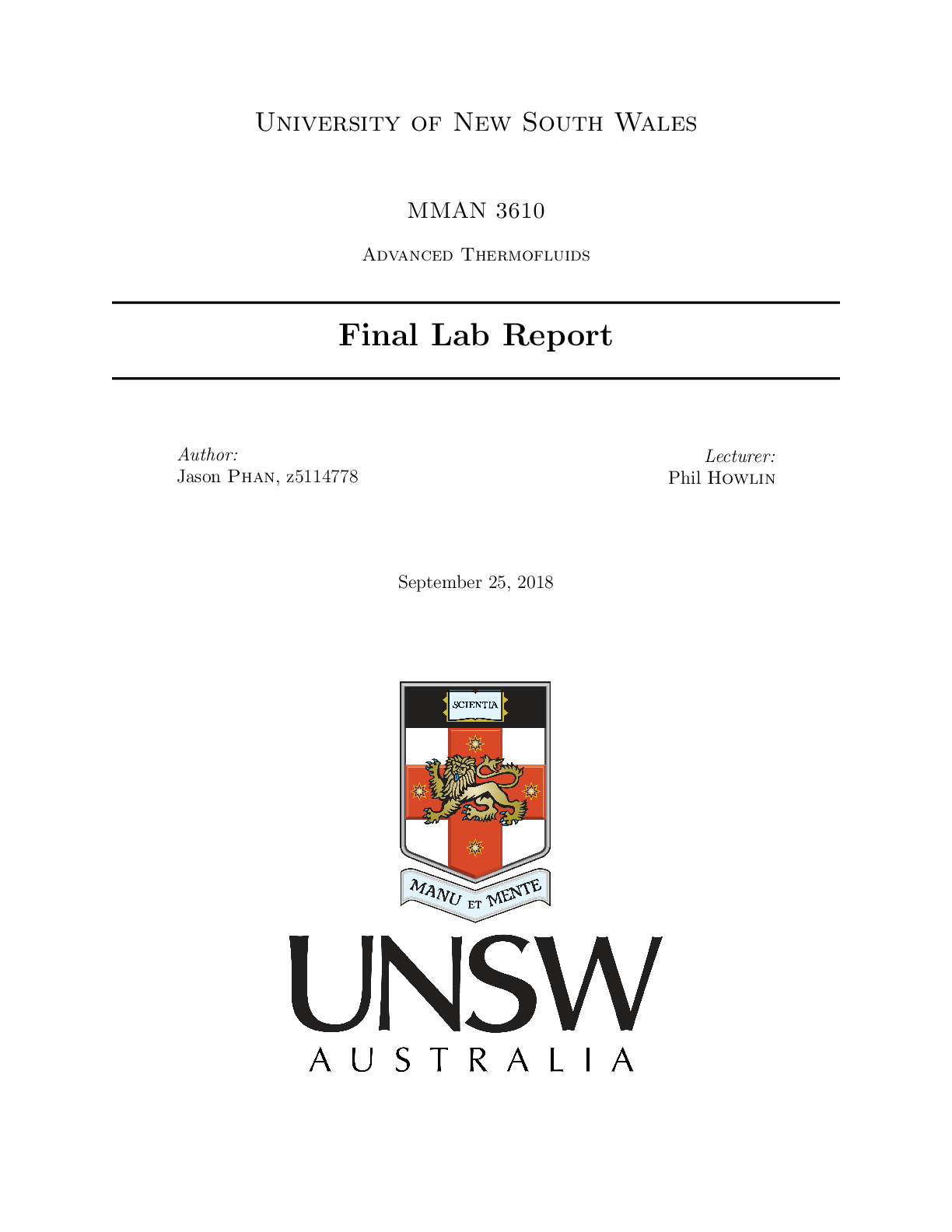 Engineering > Lab Report > University of New South WalesMMAN 36103610 REPORT (All)