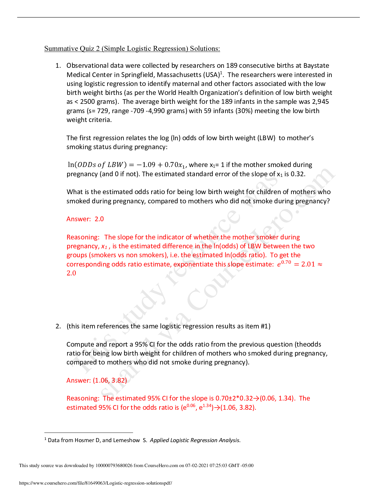 Engineering > QUESTIONS & ANSWERS > University of Applied Sciences and Arts Western SwitzerlandENGINEERIN 100Logistic regression solutions (All)