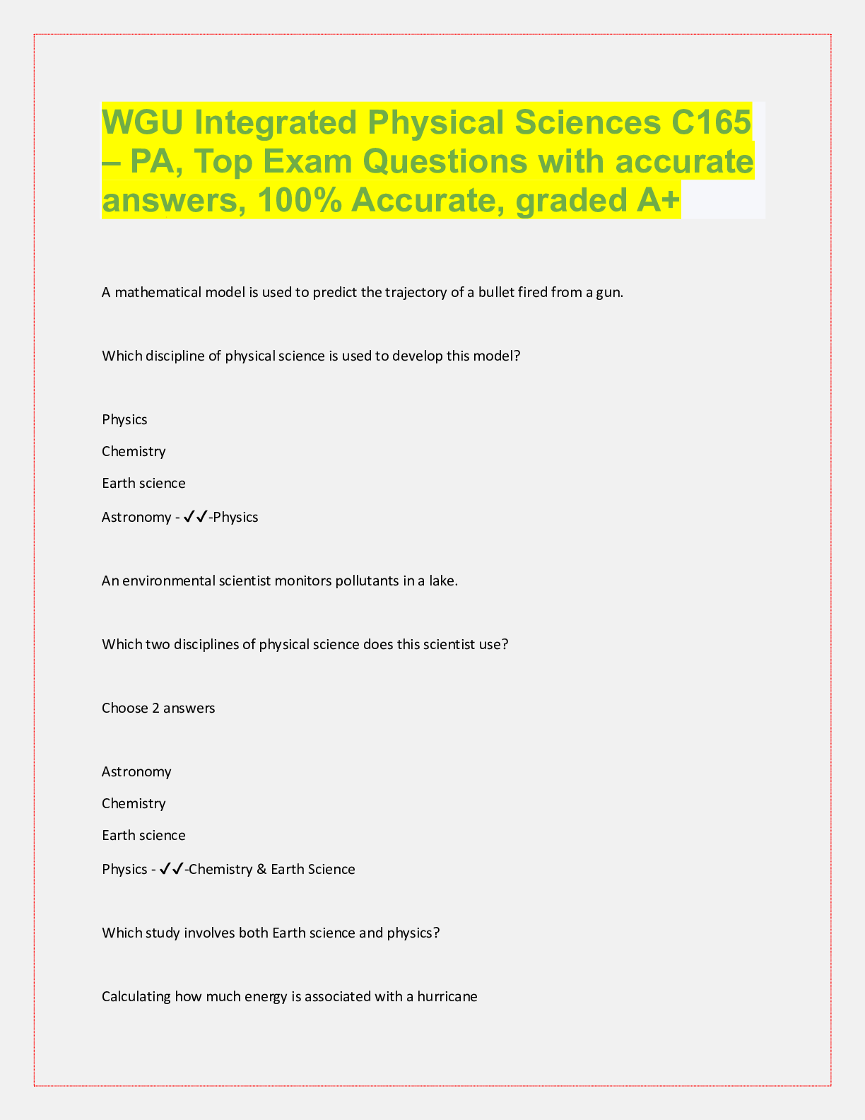 Engineering > QUESTIONS & ANSWERS > WGU Integrated Physical Sciences C165 – PA, Top Exam Questions with accurate answers, 100% Accurate, graded A+ (All)