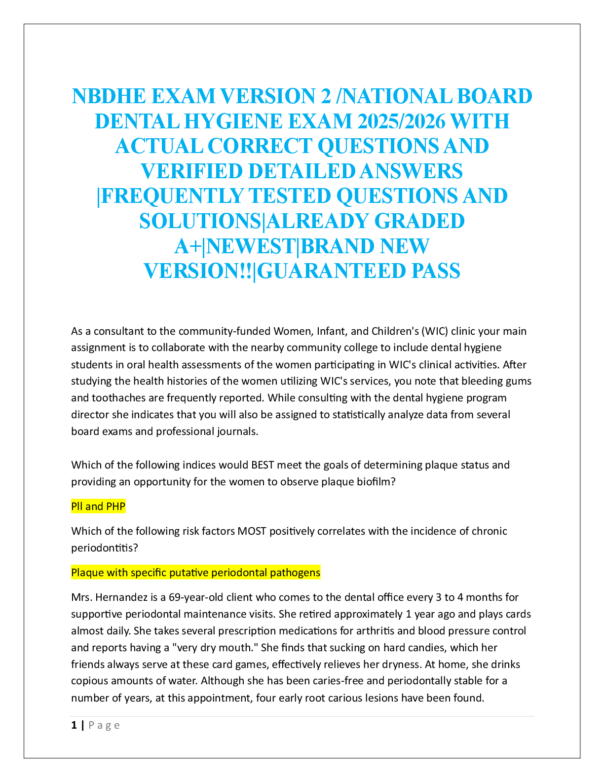 Dentistry > EXAM > NBDHE EXAM VERSION 2 /NATIONAL BOARD DENTAL HYGIENE EXAM (All)