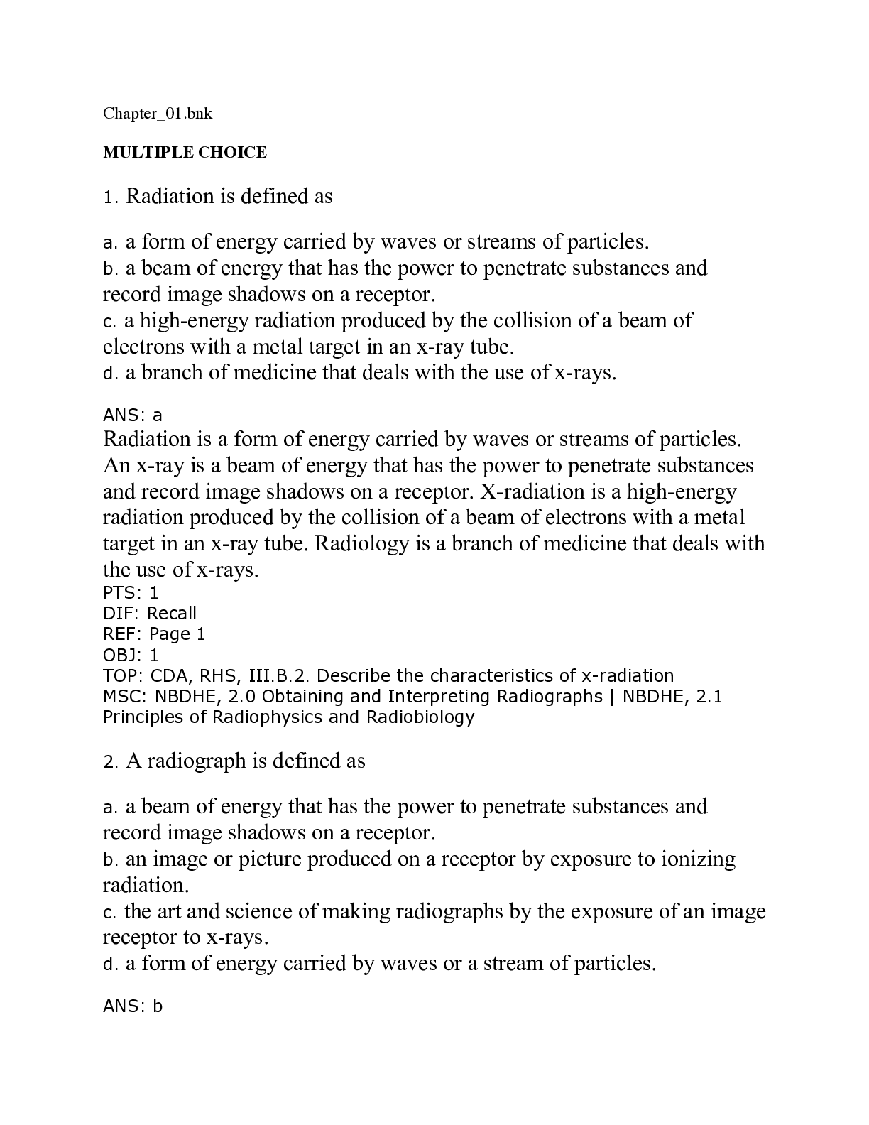 Dentistry > TEST BANKS > Test Bank for Dental Radiography, 6th Edition by Iannucci (All)
