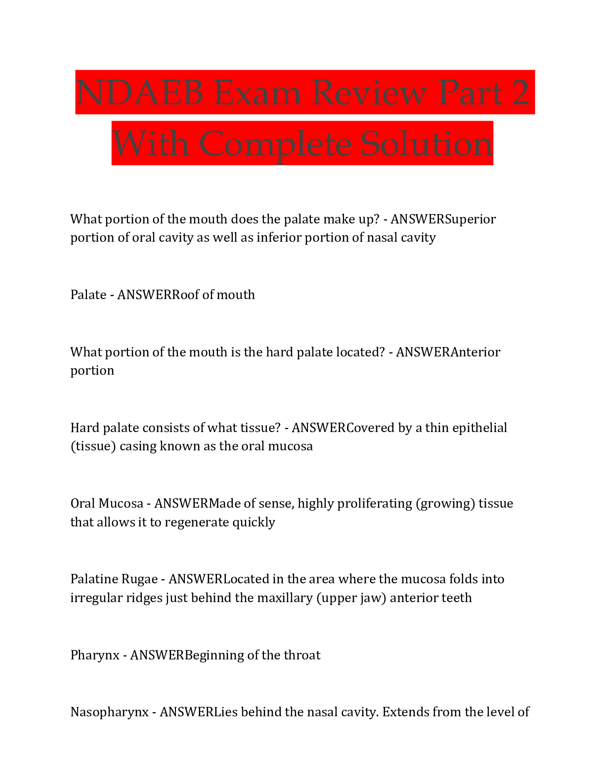 Dentistry > QUESTIONS & ANSWERS > NDAEB Exam Review Part 2 With Complete Solution (All)
