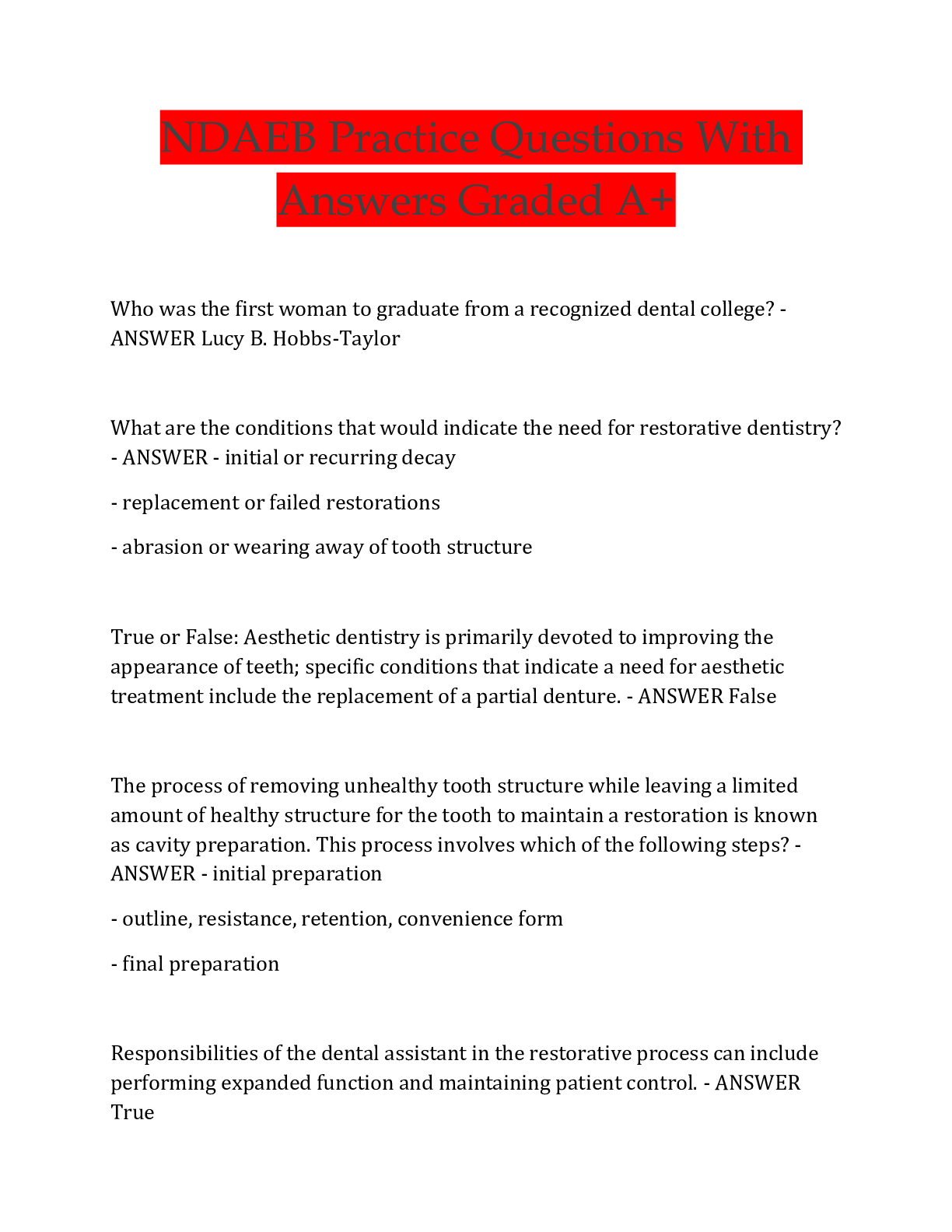 Dentistry > QUESTIONS & ANSWERS > NDAEB Practice Questions With Answers Graded A+ (All)
