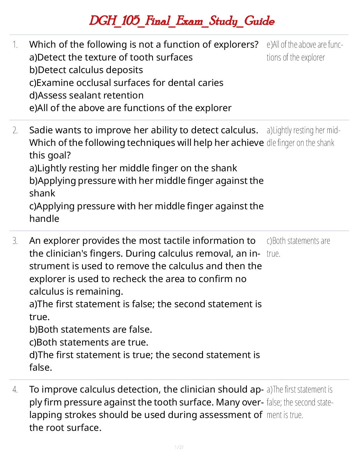 Dentistry > STUDY GUIDE > DGH 105 Final Exam Study Guide (All)