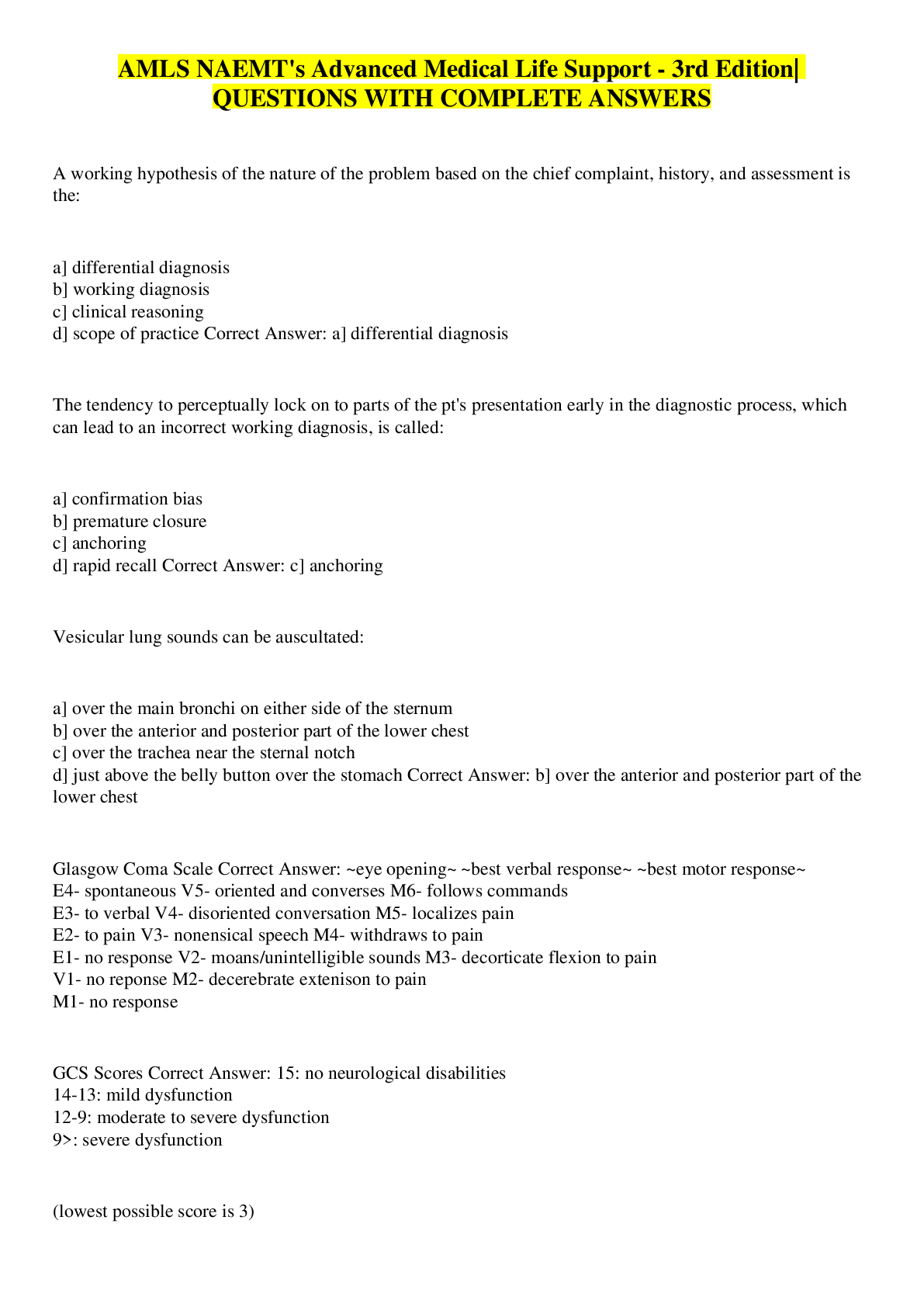 Health Computing > QUESTIONS & ANSWERS > AMLS NAEMT's Advanced Medical Life Support - 3rd Edition| QUESTIONS WITH COMPLETE ANSWERS (All)