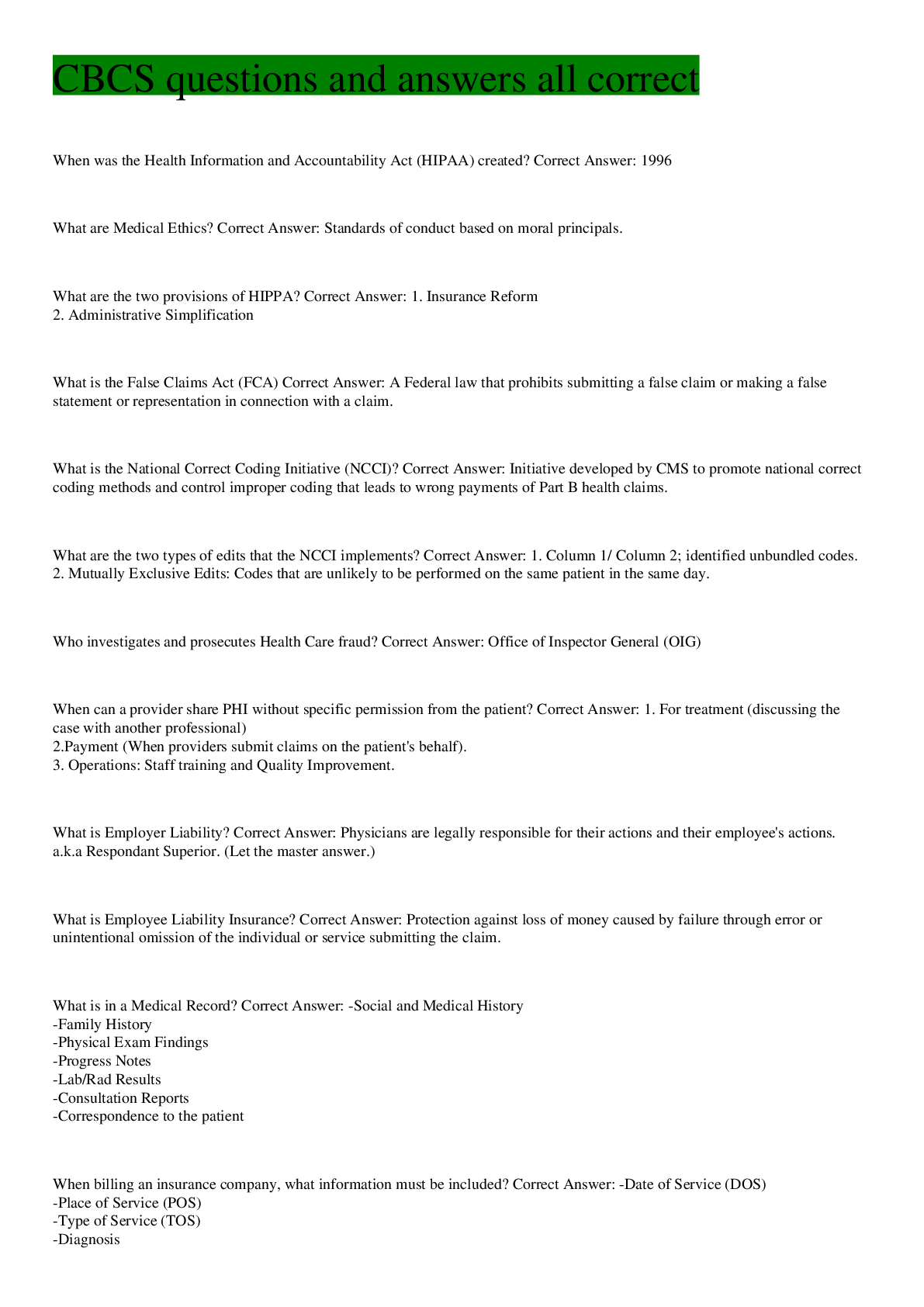 Health Computing > QUESTIONS & ANSWERS > NHA - Certified Billing and Coding Specialist (CBCS) Study Guide (All)