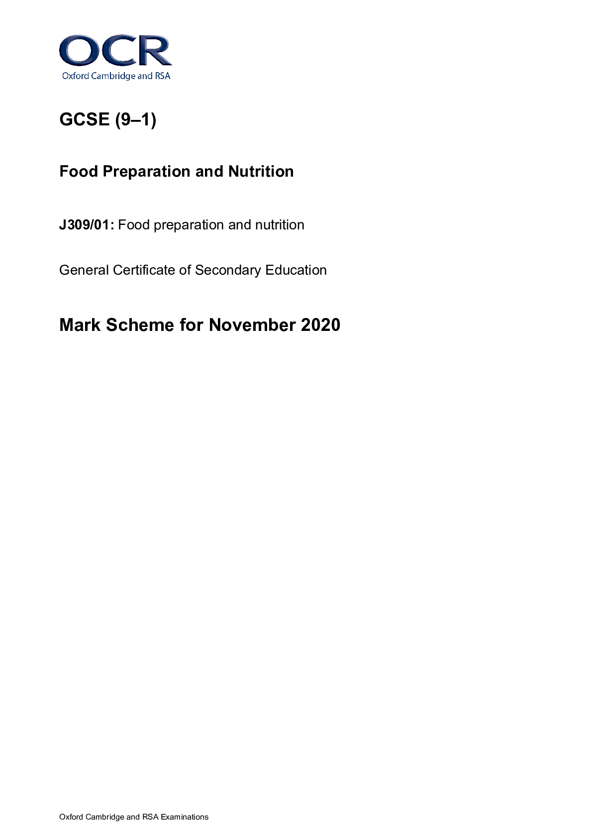 Nutrition > GCSE MARK SCHEME > GCSE (9–1) Food Preparation and Nutrition J309/01: Food preparation and nutrition General Certificate of Secondary Education Mark Scheme for November 2020 (All)