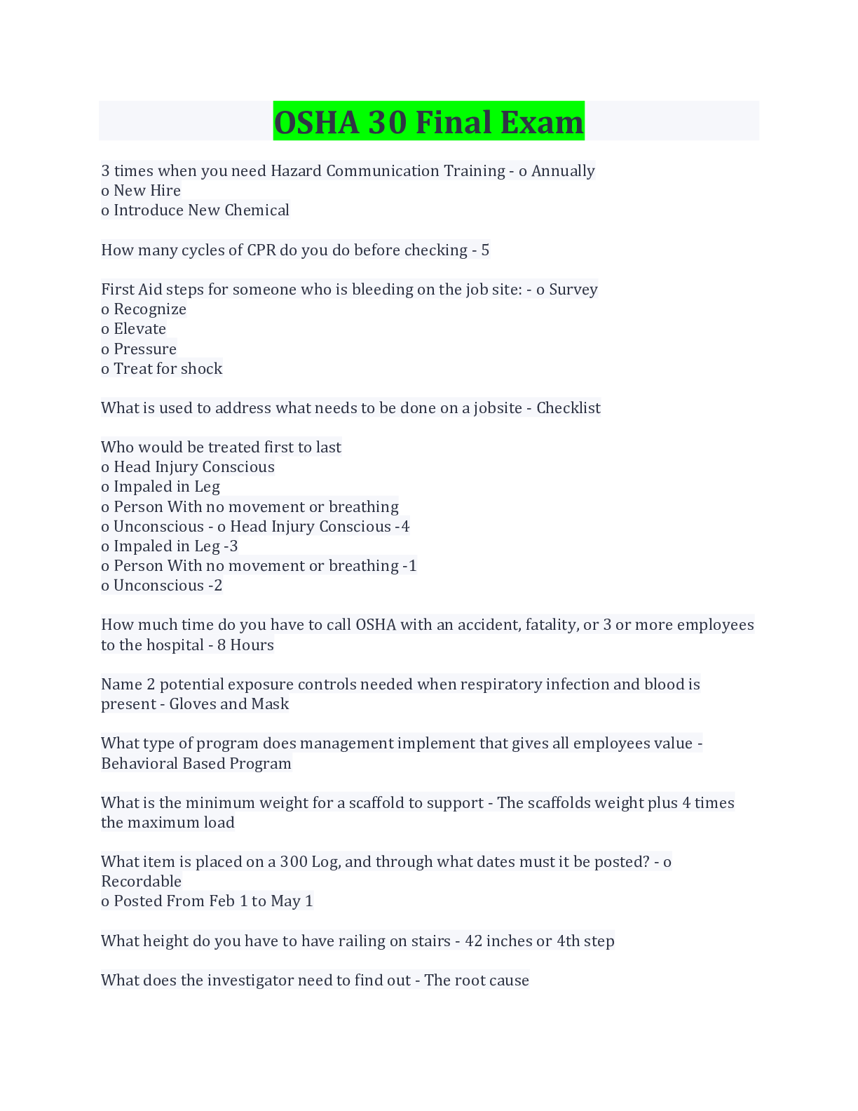 Occupational Therapy > EXAM > OSHA 30 Final Exam Questions with COMPLETE SOLUTION (All)