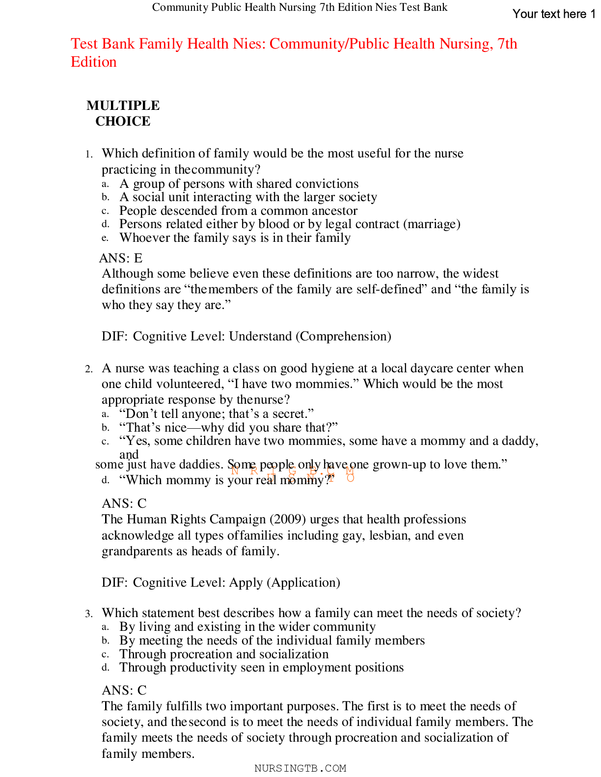 Public Health > TEST BANKS > Test Bank Family Health Nies: Community/Public Health Nursing, 7th Edition (All)