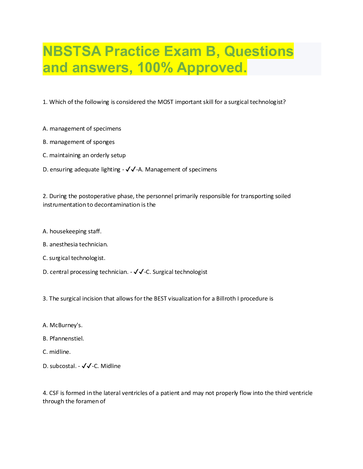 Surgery > QUESTIONS & ANSWERS > NBSTSA Practice Exam B (All)