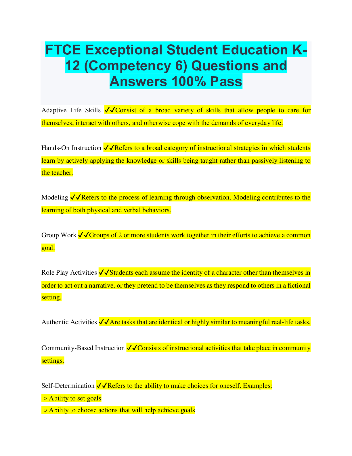 Physical Education > QUESTIONS & ANSWERS > FTCE Exceptional Student Education K12 (Competency 6) Questions and Answers 100% Pass (All)