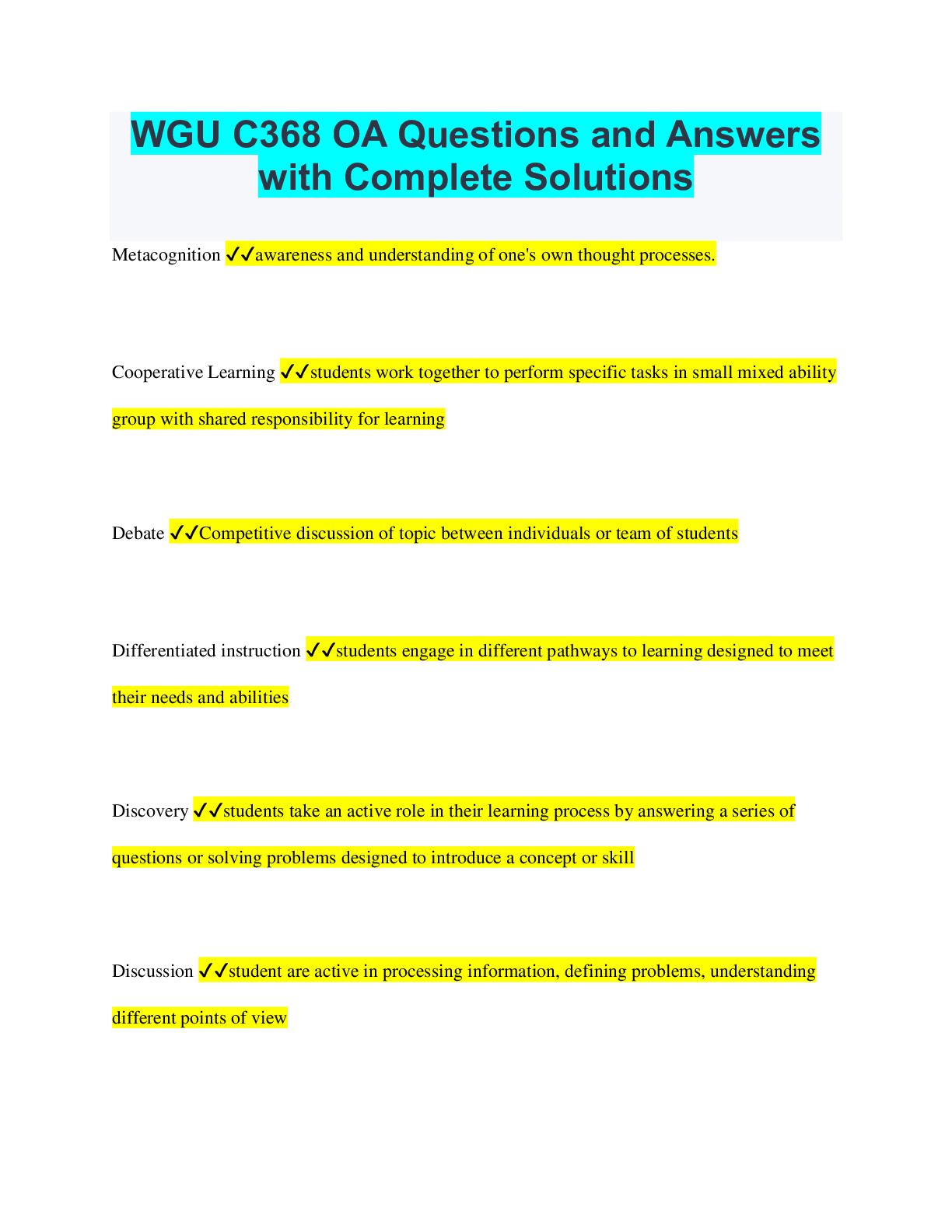 Physical Education > QUESTIONS & ANSWERS > WGU C368 OA Questions and Answers with Complete Solutions (All)